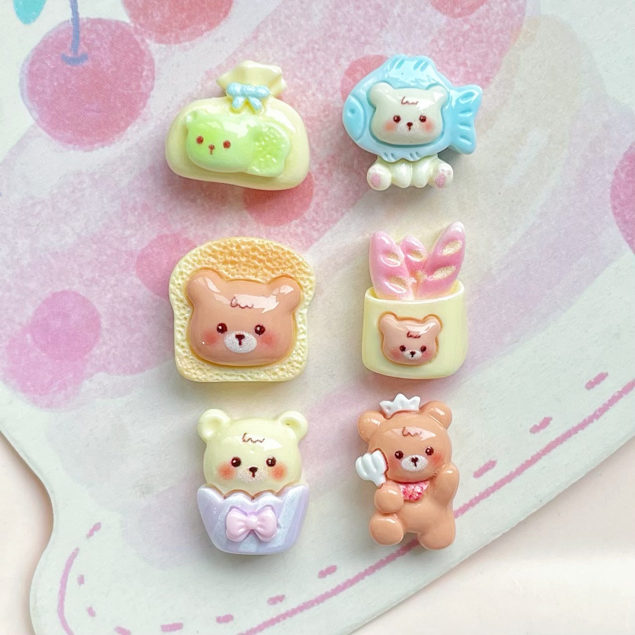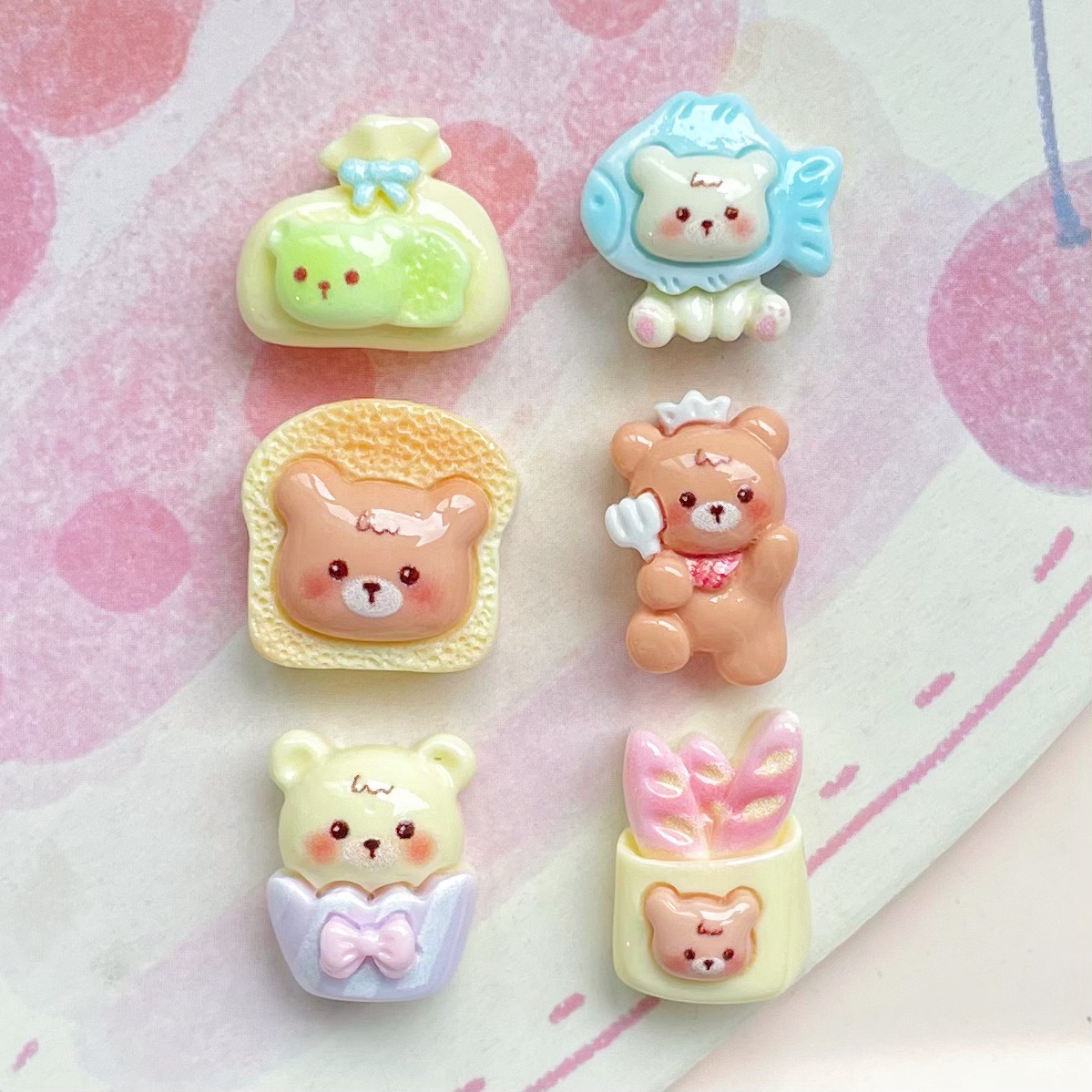 미니 곰 음식 장난감 만화 수지 액세서리 요리사 곰 빵 장식 머리핀 휴대 전화 케이스 네일 아트 재료 패키지