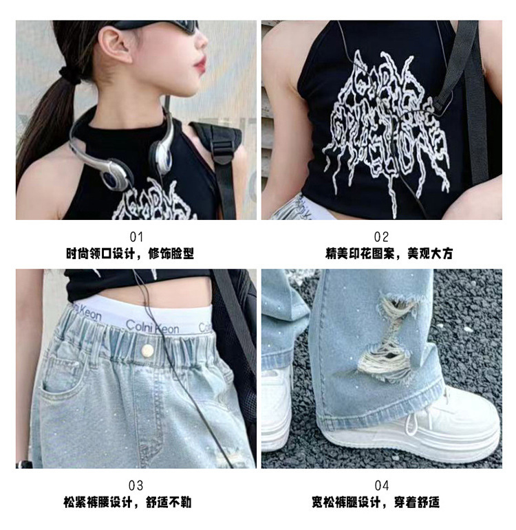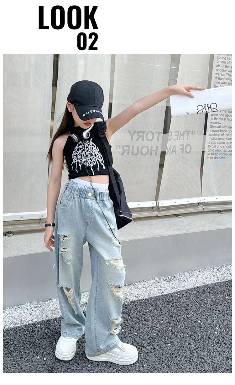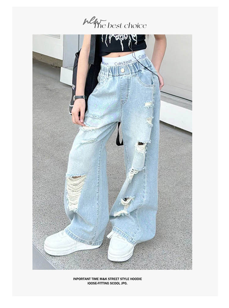 여아 청바지 여름 신작 패셔너블한 찢어진 와이드 팬츠 얇은 한국식 스트레이트 팬츠 대외 무역 아동복 트렌드스토어 가기