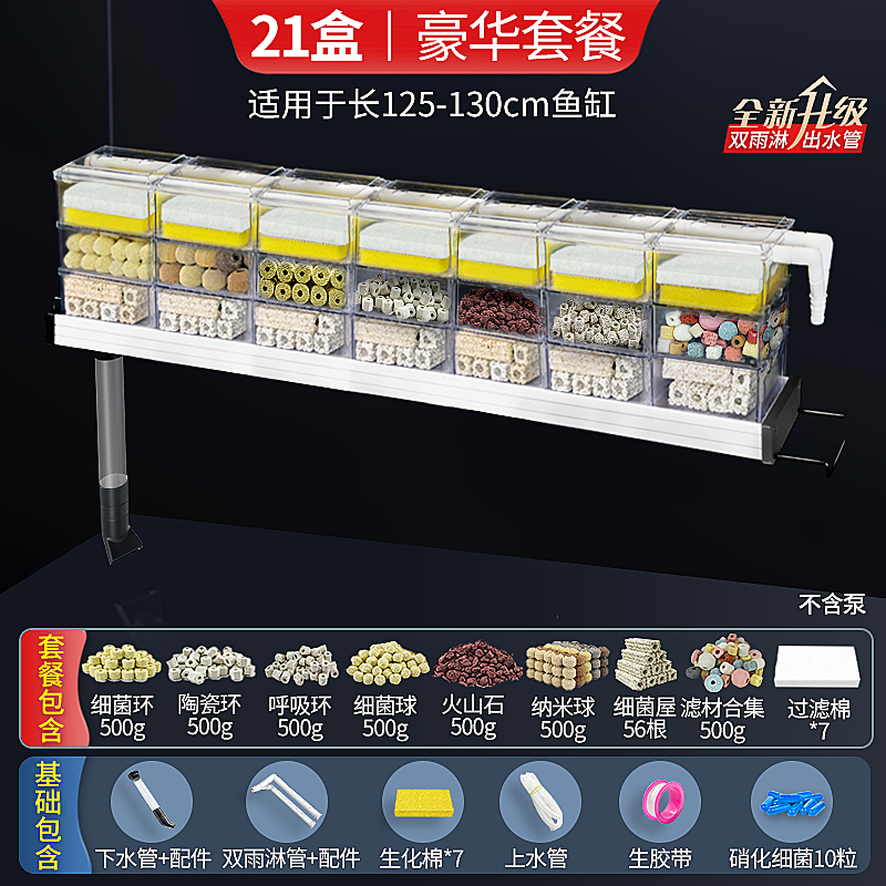 • 흰색 21 상자 [업그레이드 된 이중 튜브] + 필터 재료 + 60w 펌프