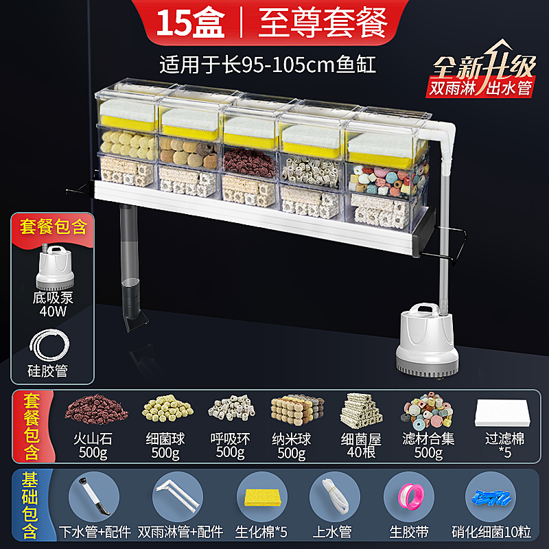 • 흰색 15박스 [업그레이드된 이중 튜브] + 필터 재료 + 40w 펌프