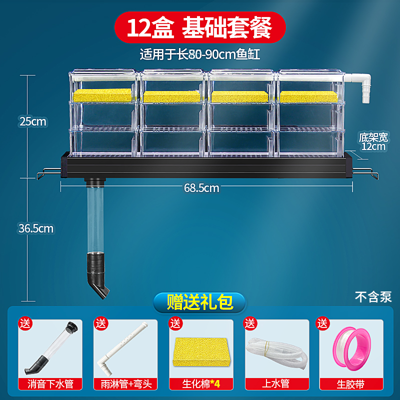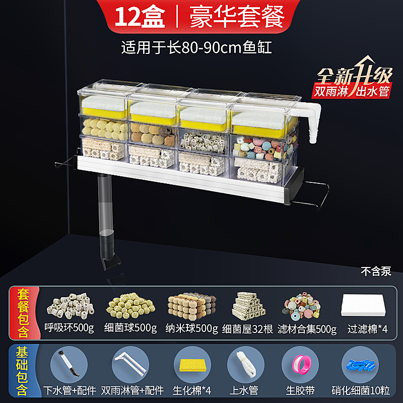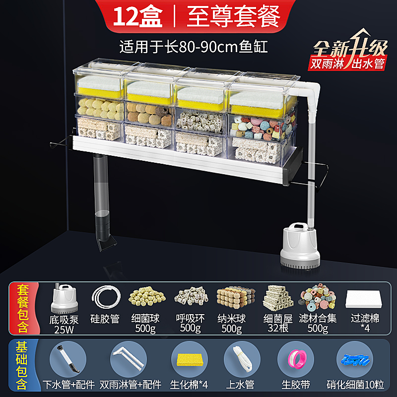 • 검정색 12박스 [단일 튜브 패키지] + 필터 재료 + 하단 흡입 펌프 + 사은품 패키지