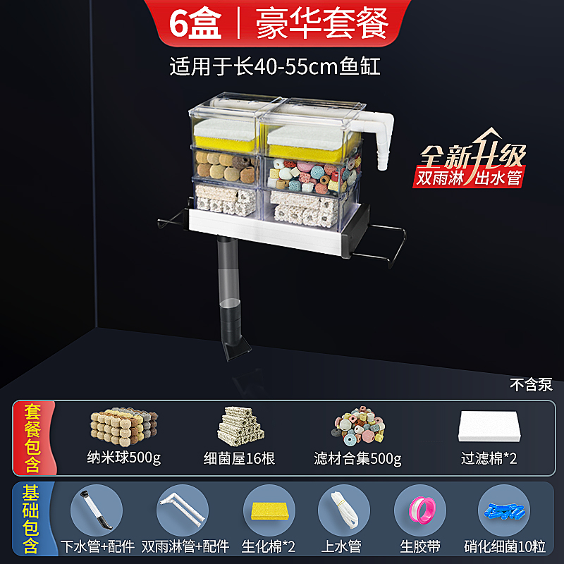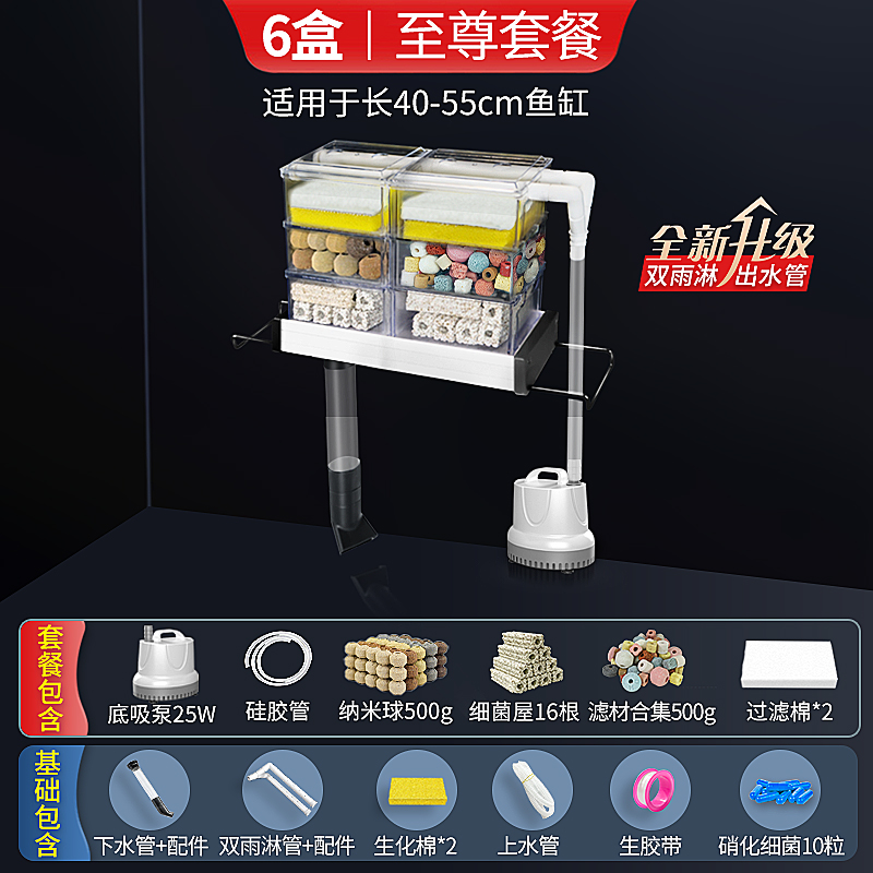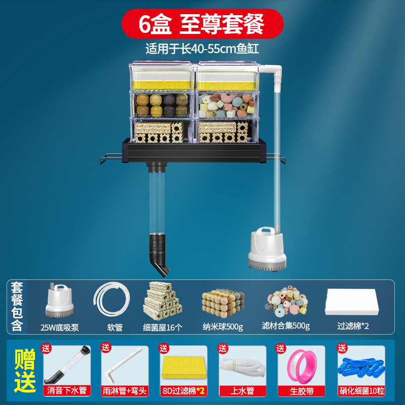 • 검정색 6박스 [단일 튜브 패키지] + 필터 재료 + 바닥 흡입 펌프 + 사은품 패키지