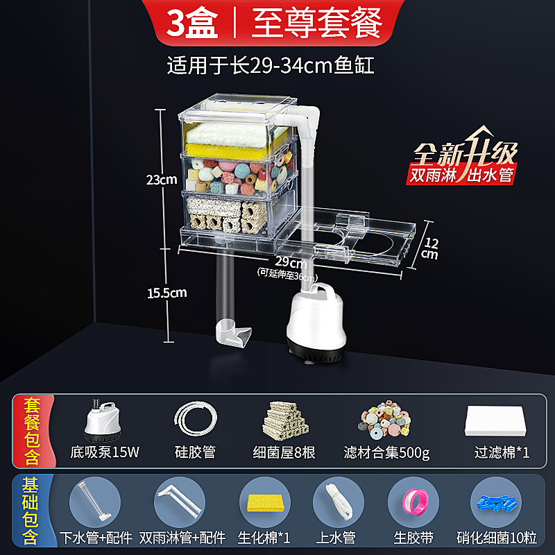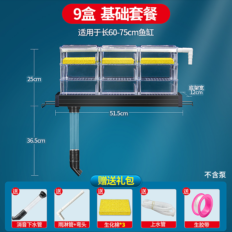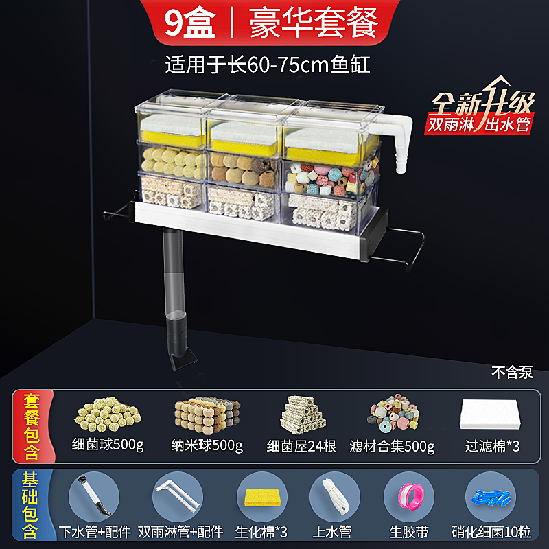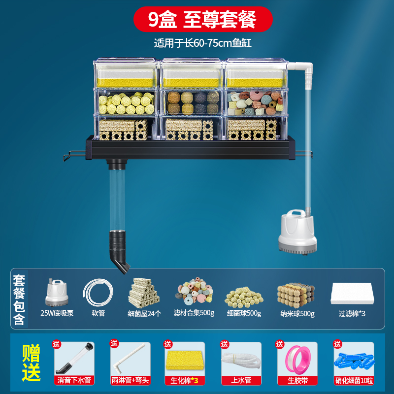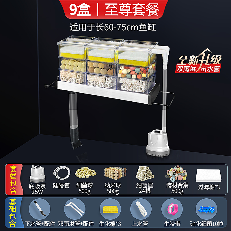 • 검정색 9박스 [단일 튜브 패키지] + 필터 재료 + 하단 흡입 펌프 + 사은품 패키지