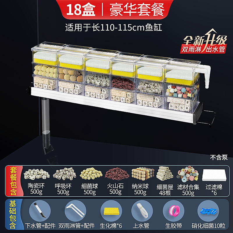 • 흰색 18박스 [업그레이드된 이중 튜브] + 필터 재료 + 60w 펌프