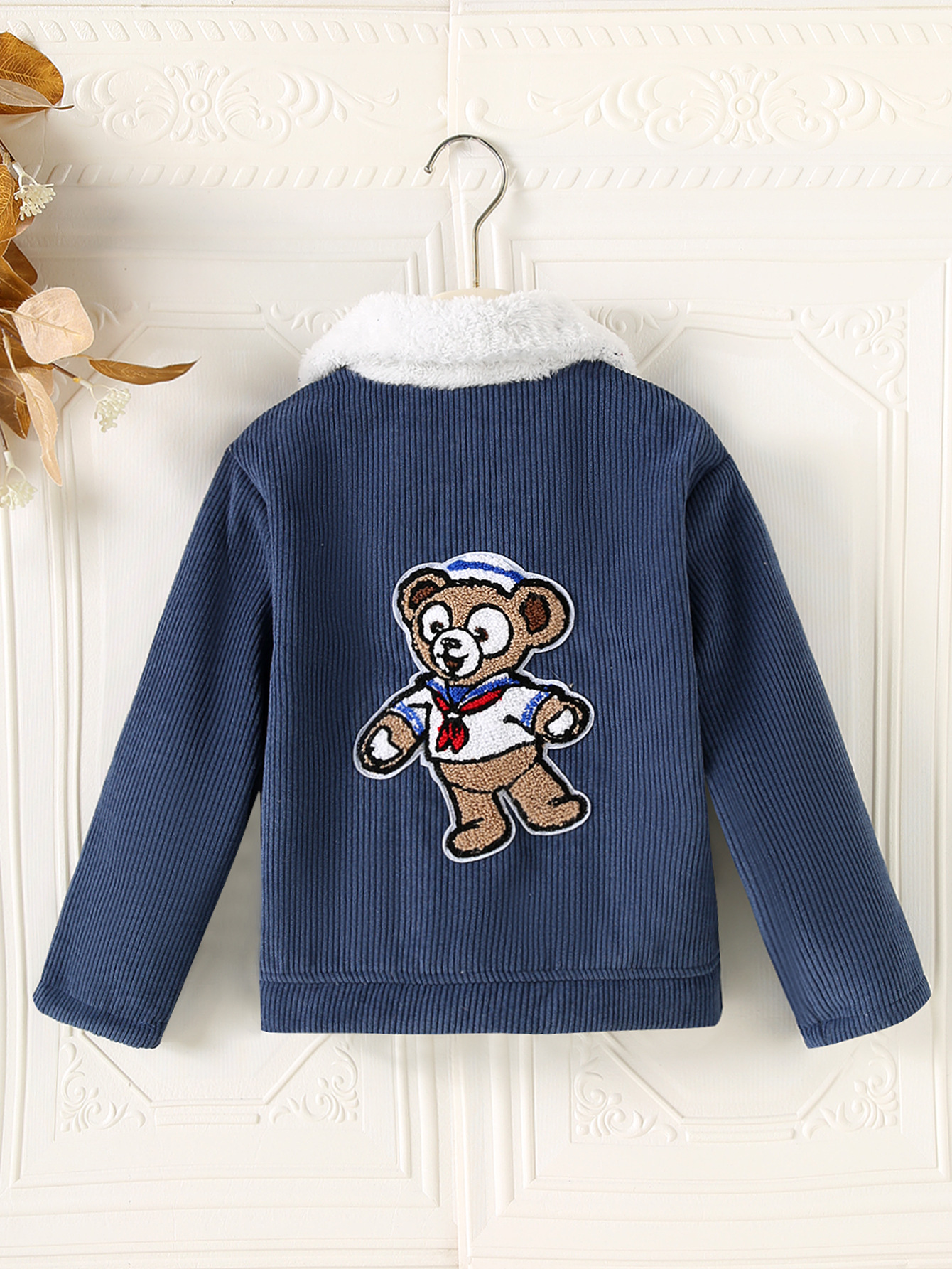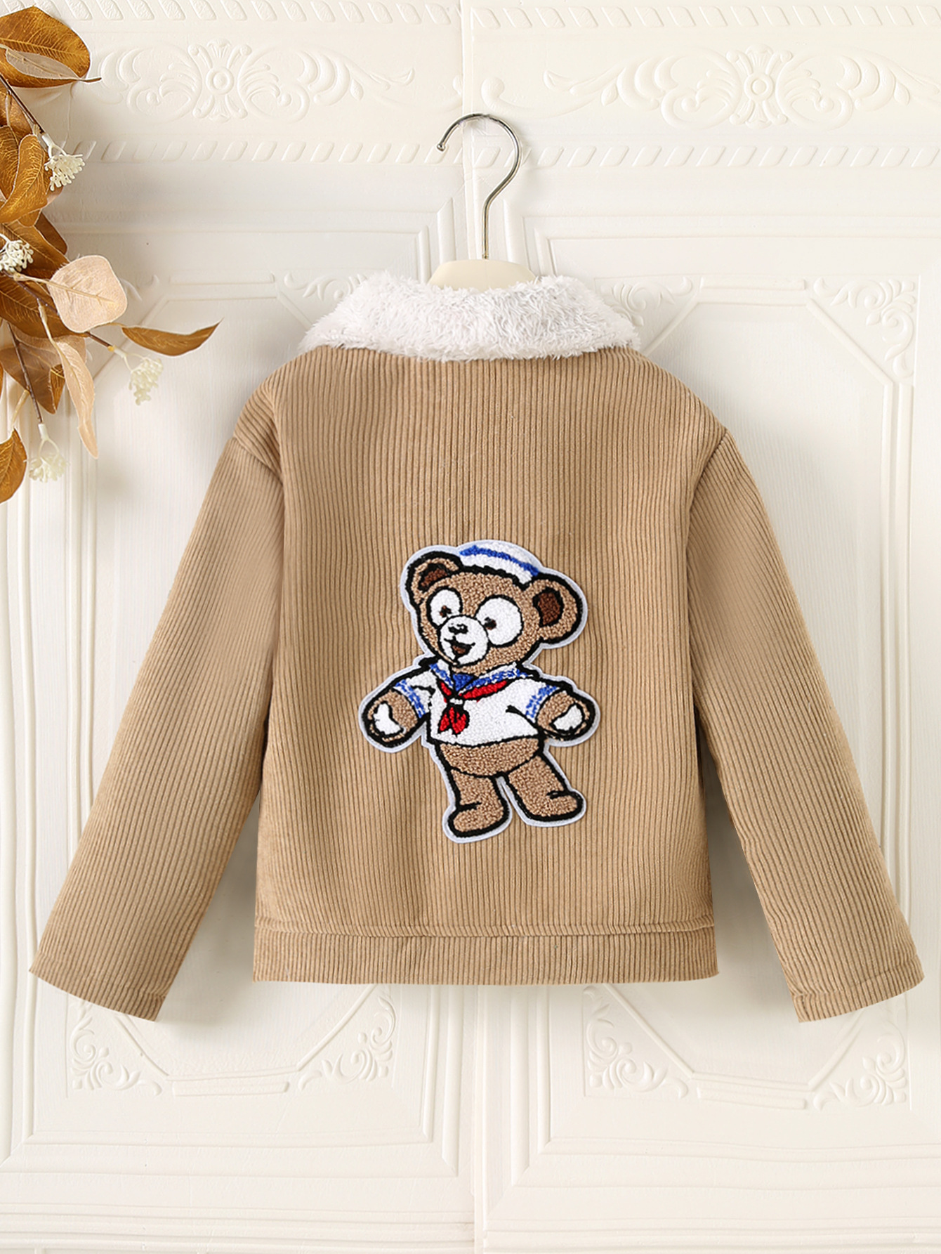 겨울 소년 긴팔 벨벳 방풍 및 방한 따뜻한 뒷면 만화 곰 채널 코트 버튼 캐주얼 재킷스토어 가기