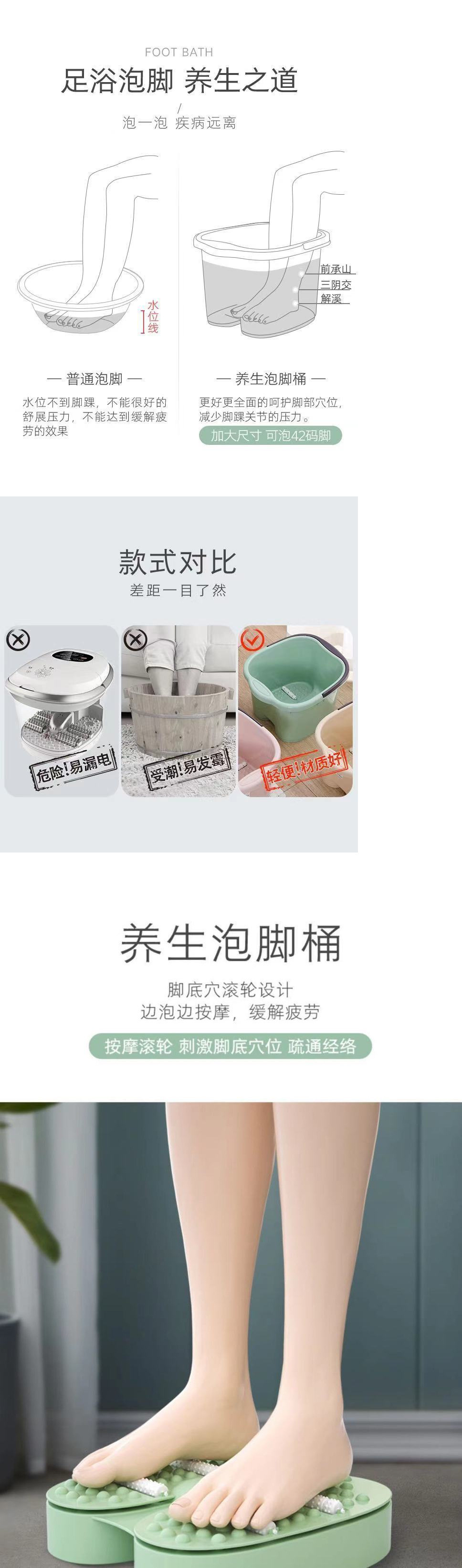 발목 높이 깊은 플라스틱 어린이 발 욕조 건강 발 마사지 두꺼운 발바닥 마사지 온도 조절