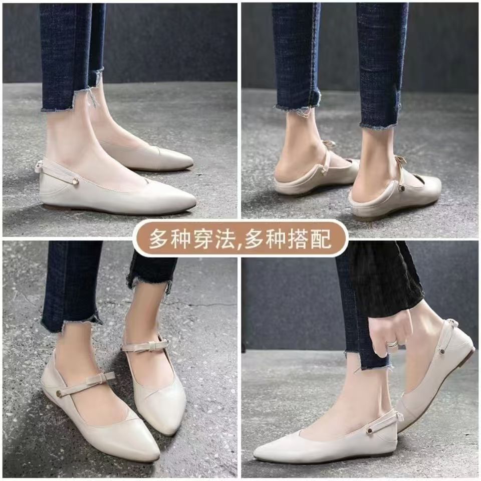 진짜 부드러운 가죽 부드러운 밑창 봄 여름 신발 플랫 슈즈 2023 새로운 여름 여성 신발 다용도 얕은 입 뾰족한 작은 가죽 신발스토어 가기