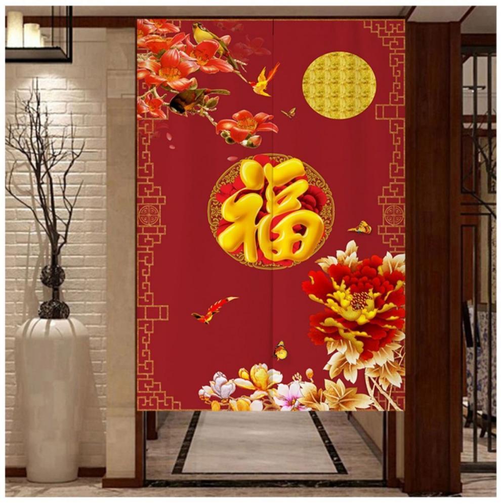 중국 스타일의 붉은 행운 문 커튼 홈 입구 패브릭 커튼 주방 침실 파티션 커튼 입구 욕실 커튼