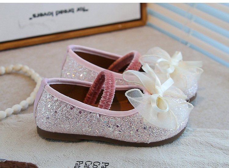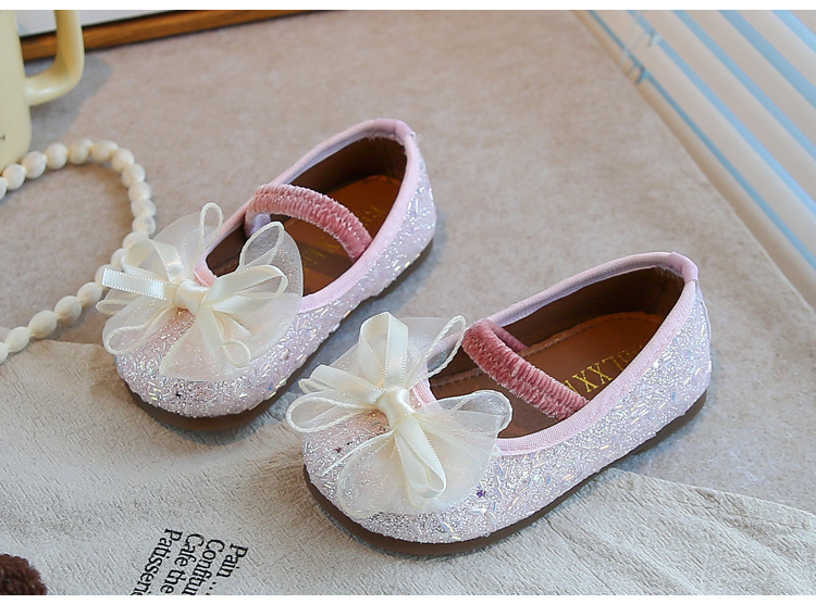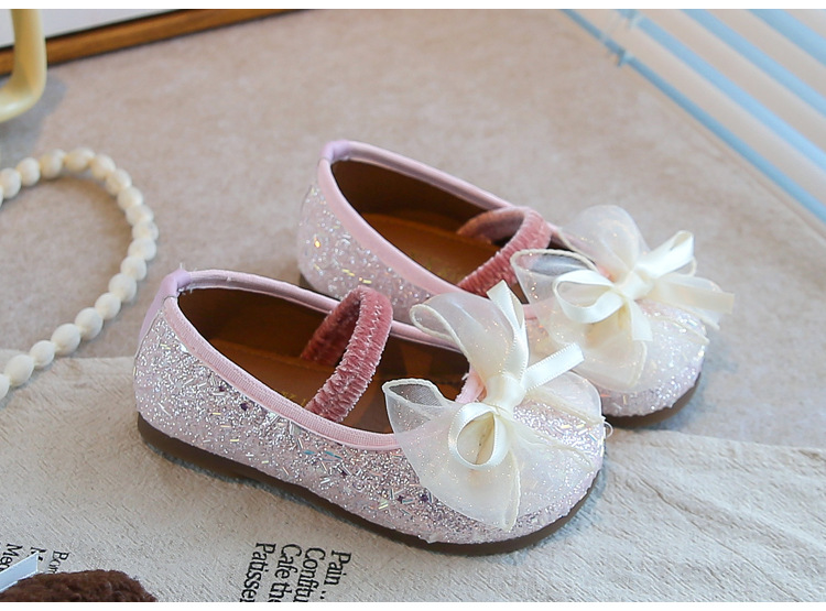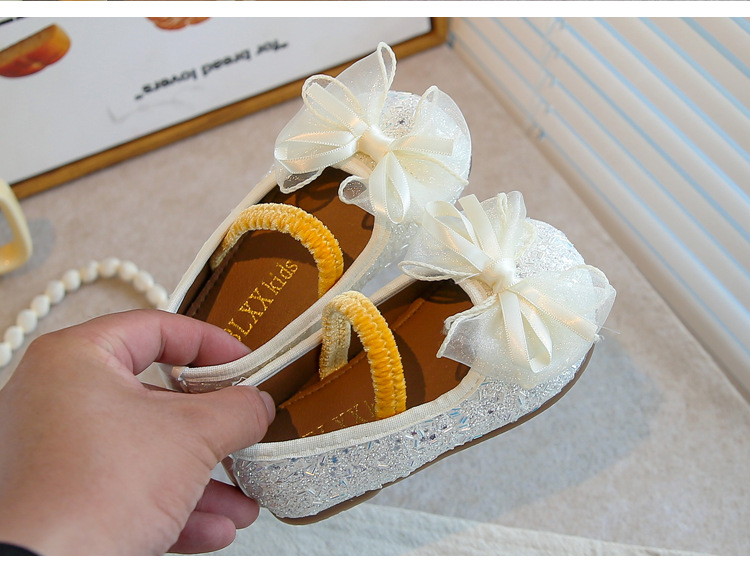 공주 소녀 가죽 신발 2025 가을 새로운 어린 소녀 반짝 이는 활 어린이 캐주얼 성능 신발스토어 가기