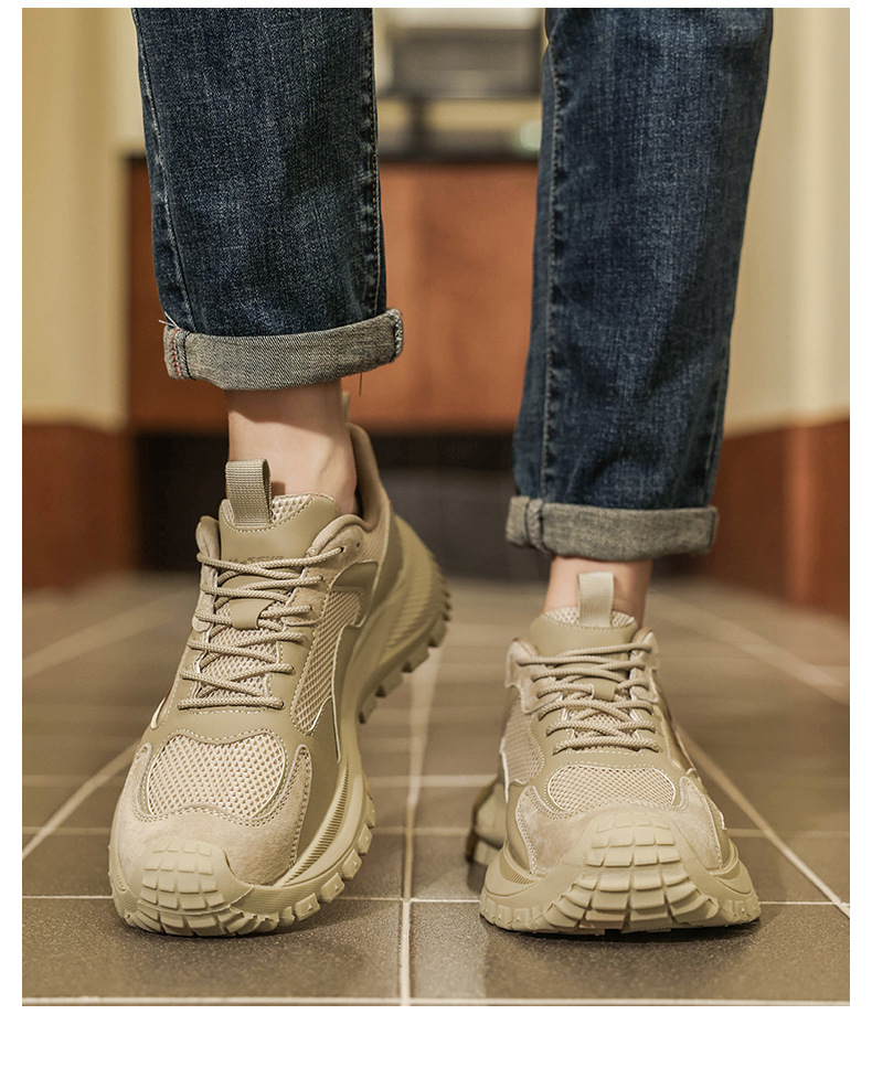 남성 신발 2025 여름 새로운 두꺼운 밑창 검은 전사 아빠 신발 남성 야외 부드러운 밑창 통기성 캐주얼 스포츠 유행 신발스토어 가기