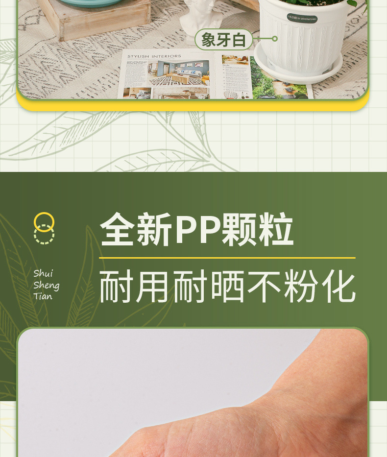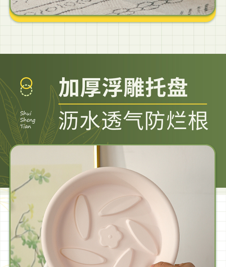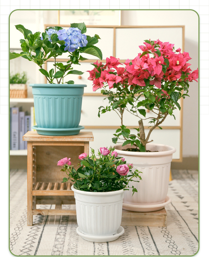 두껍고 확대된 화분, 초대구경, 북유럽 스타일 모조 도자기 수지 화분, 장미 꽃과 녹색 식물, 통기성이 있고 뿌리를 조절하는 화분스토어 가기