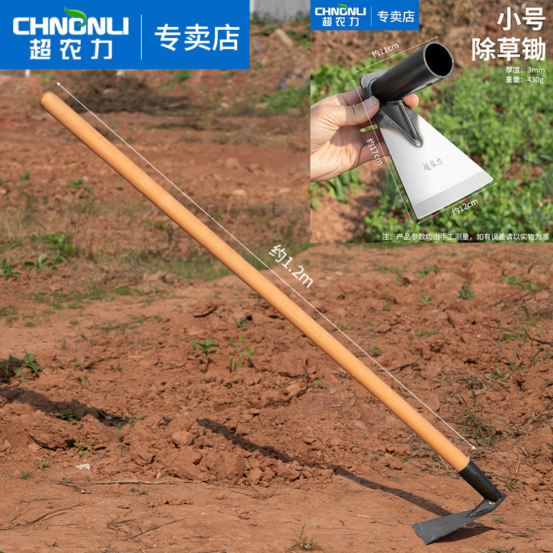 • 작은 삼각 괭이 폭 12cm + 1.2m 나무 손잡이 - 슈퍼 농력 - (삼각형) 두꺼운 잡초 괭이