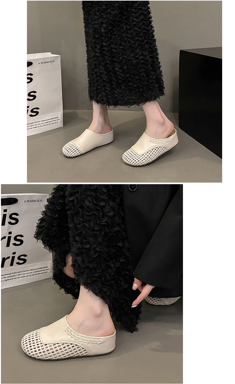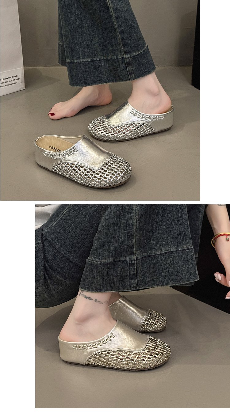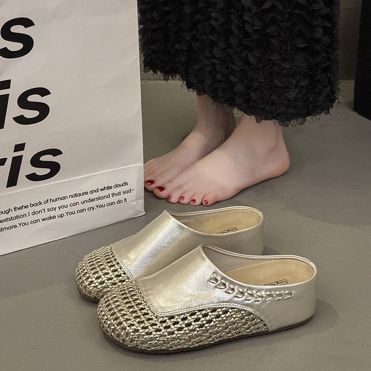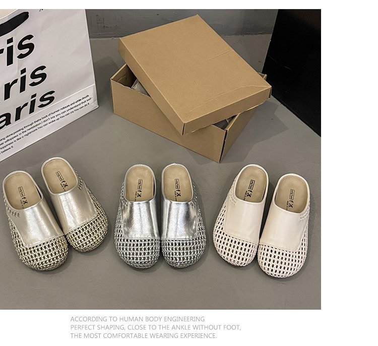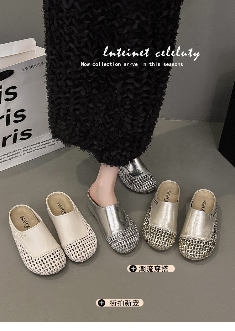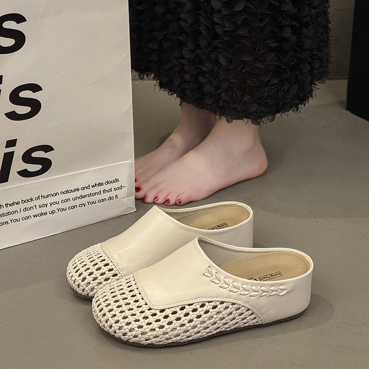 여성을위한 Baotou 하프 슬리퍼 2025 새로운 여름 슈퍼 핫 복고풍 통기성 다목적 캐주얼 내부 높이 증가 샌들
