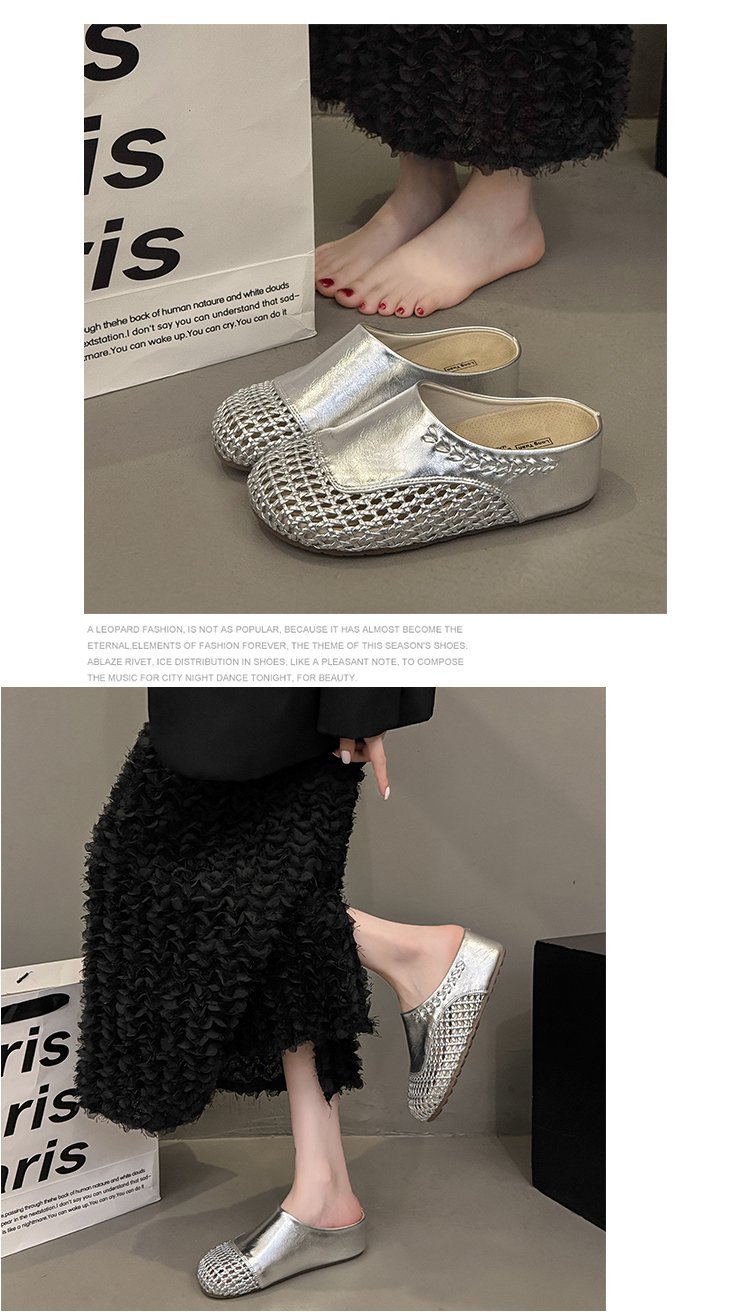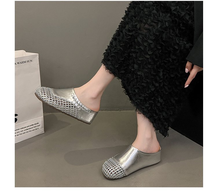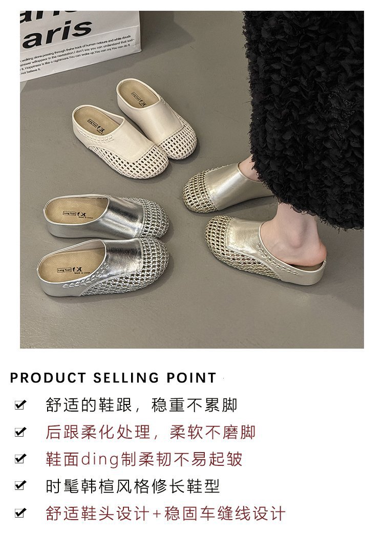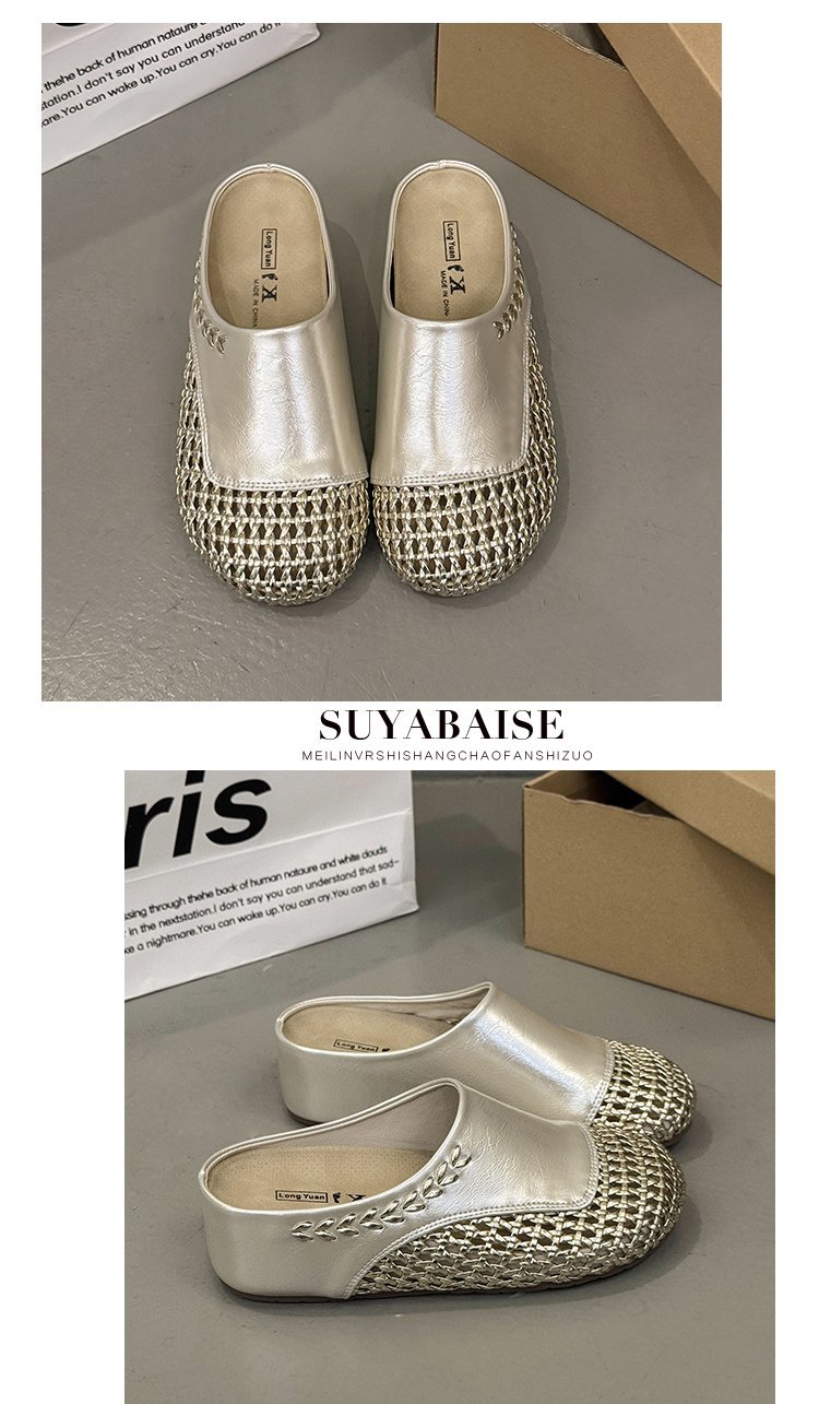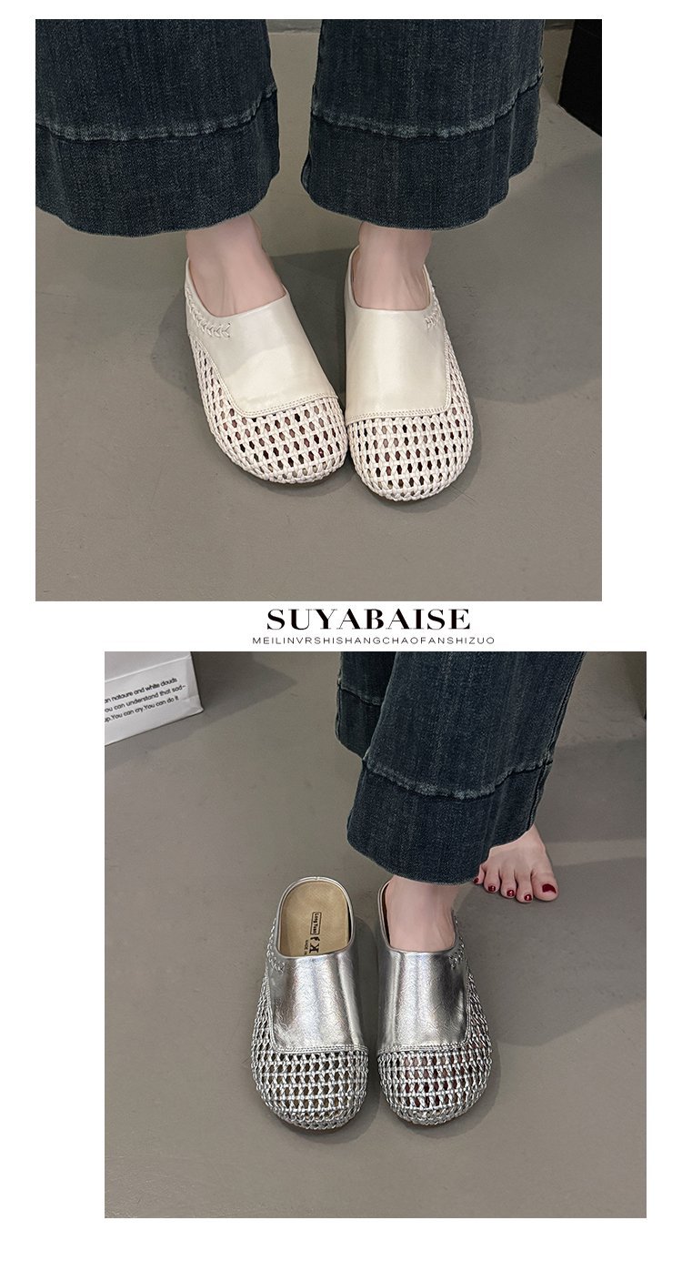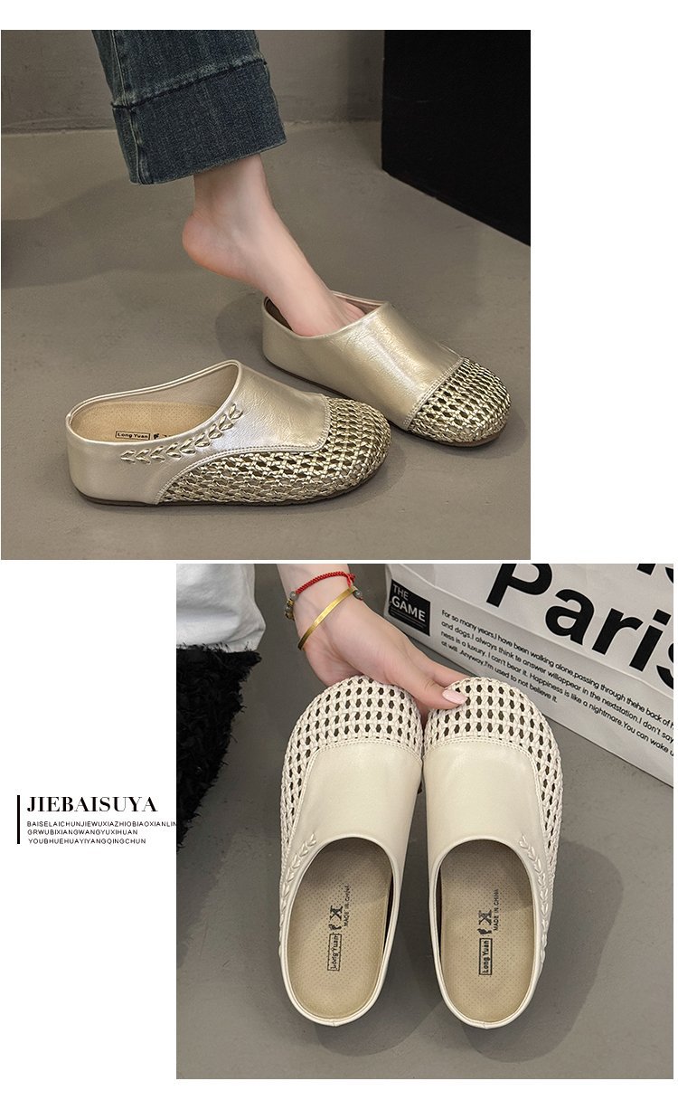 여성을위한 Baotou 하프 슬리퍼 2025 새로운 여름 슈퍼 핫 복고풍 통기성 다목적 캐주얼 내부 높이 증가 샌들