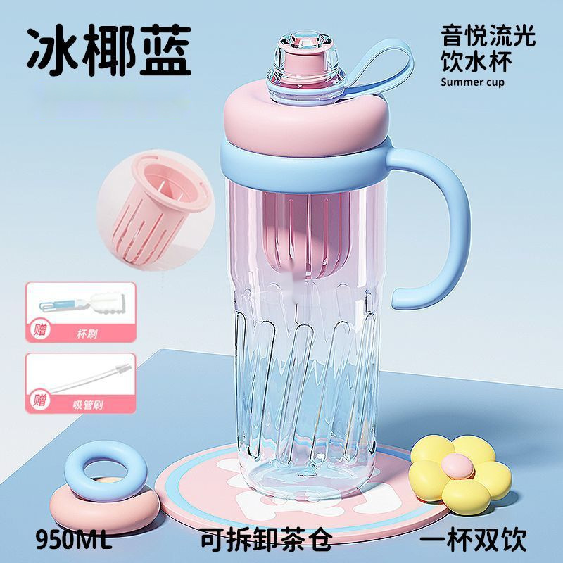 • [5종세트] 컵 + 차배수구 + 빨대 + 청소도구 - (930ml) 대용량 물컵 (블루파우더)