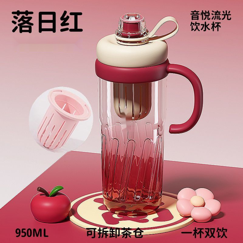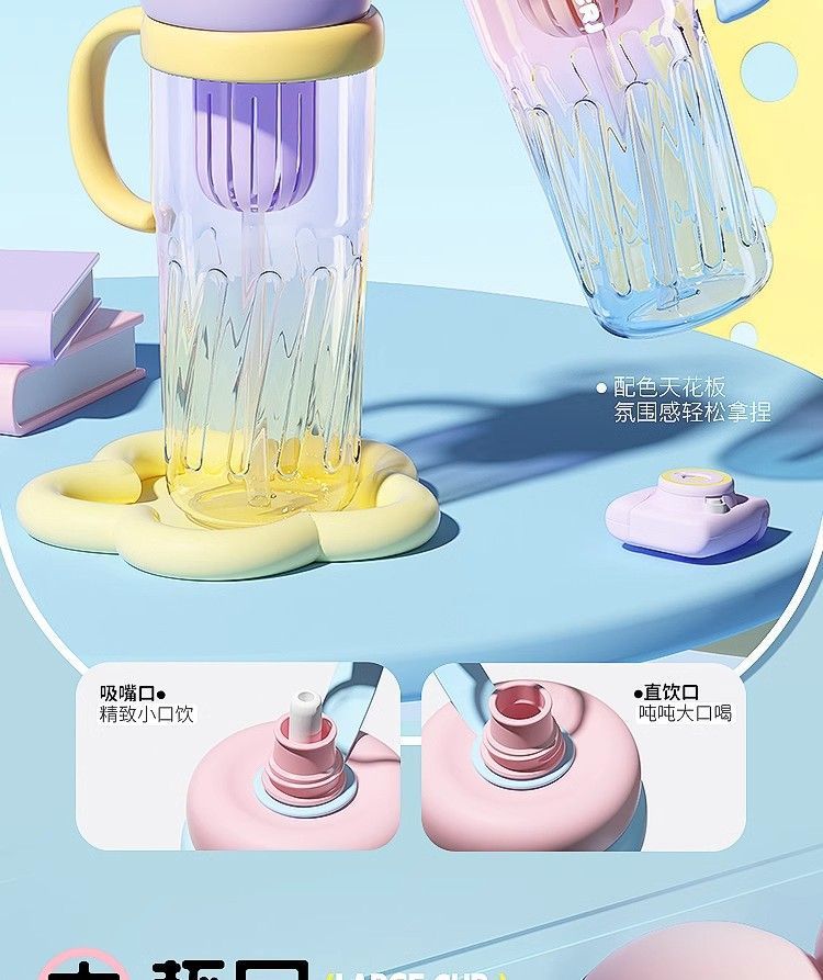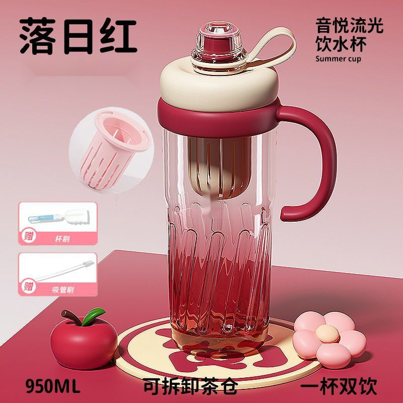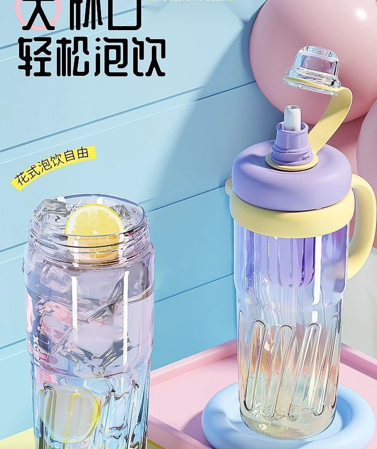 • [3종세트] 컵 + 차드레인 + 빨대 - (930ml) 대용량 물컵 (쯔청)