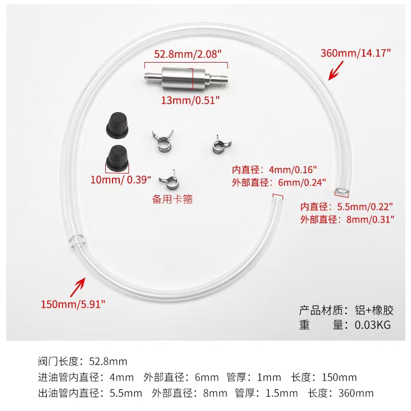 出油管内直径:6毫米, 外部直径:8毫米;长度:350毫米