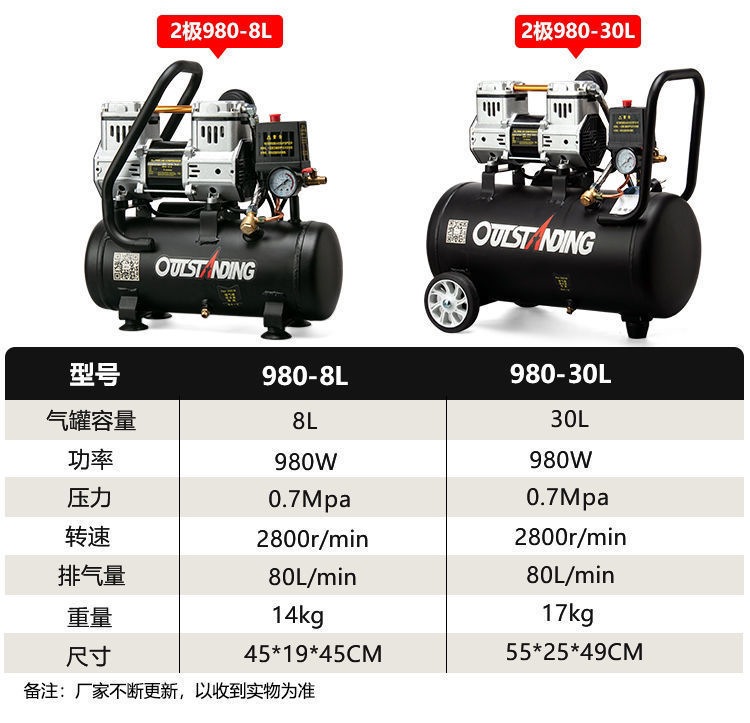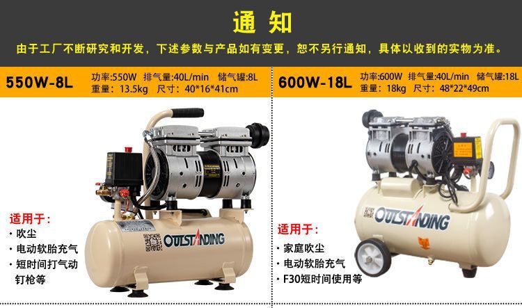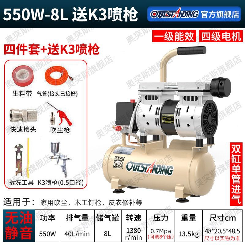 ATUS 공기 펌프 공기 압축기 소형 공기 압축기 풍선 오일 프리 자동 220V 목공 스프레이 페인트 공기 펌프