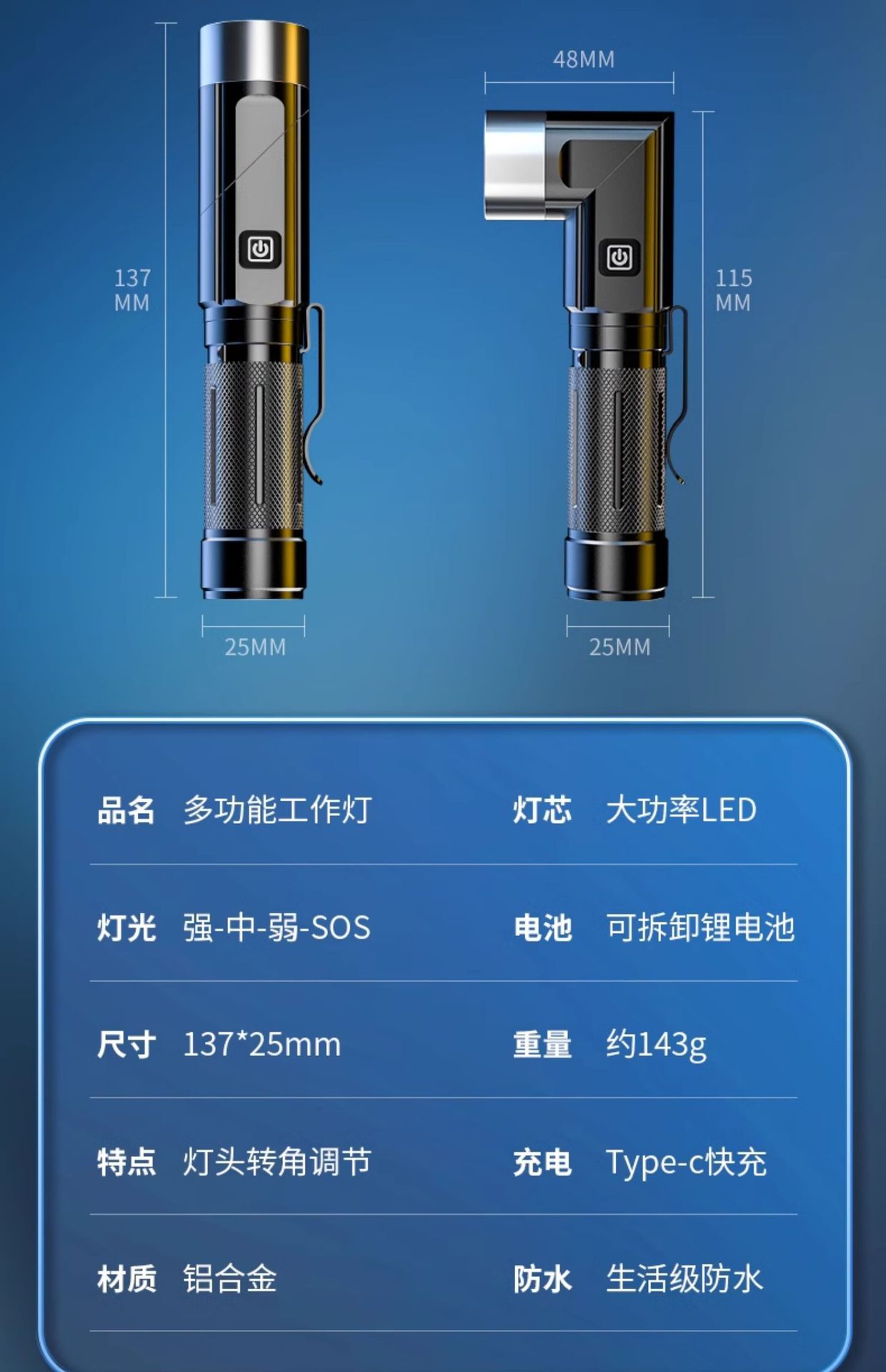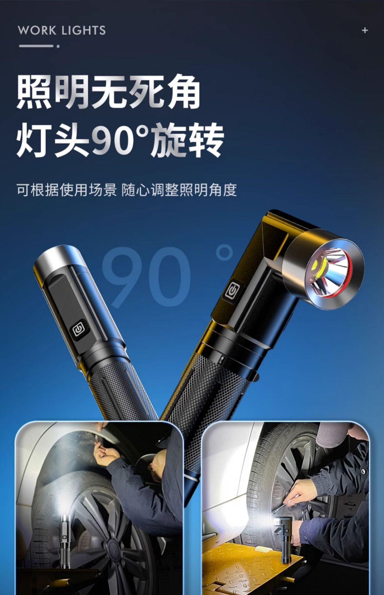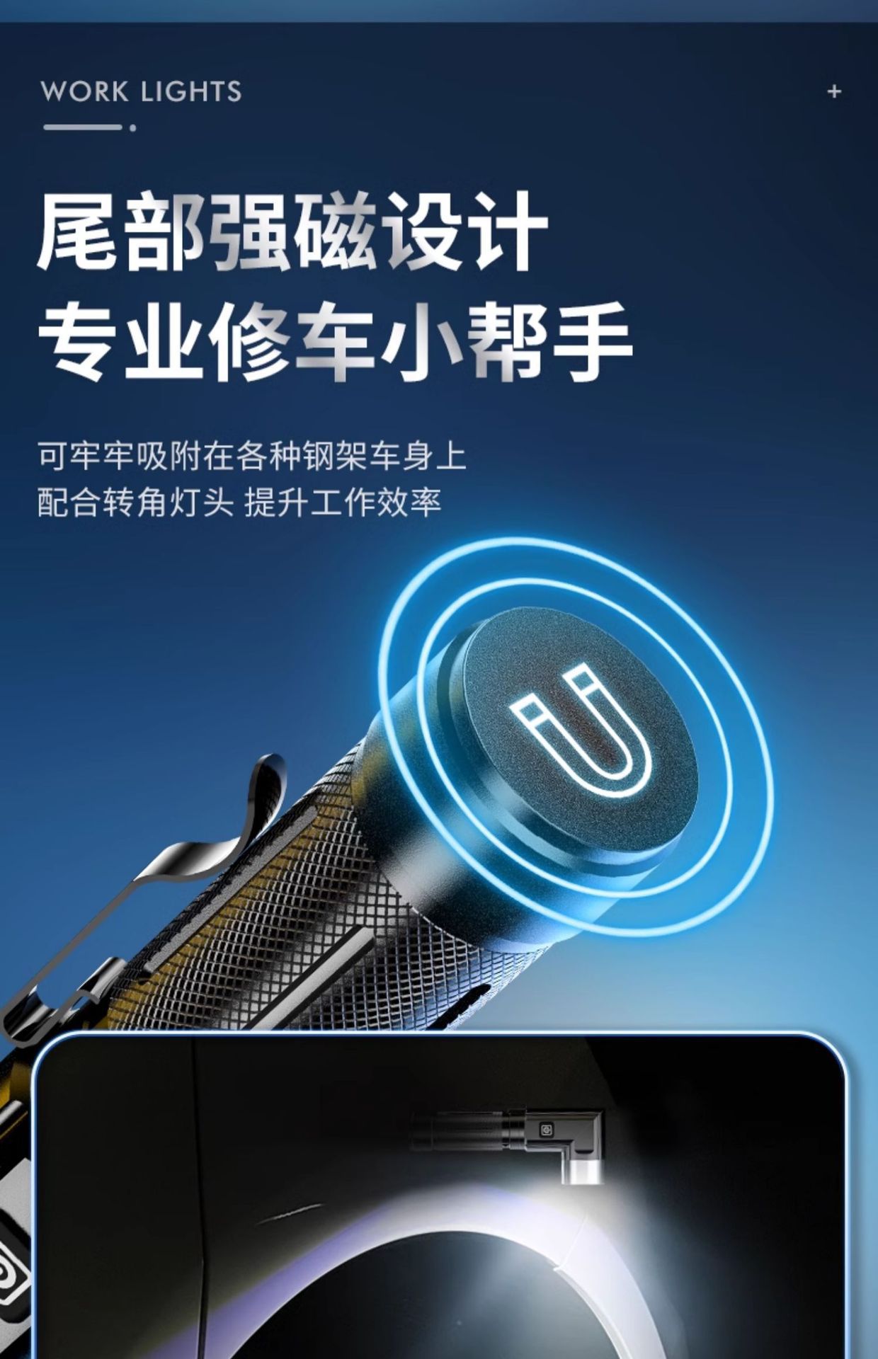 다기능 L자형 코너 손전등, 강한 빛, 곡선 팁, 매우 밝고 강한 자기 조명, 자동차 수리 및 유지 보수 작업등