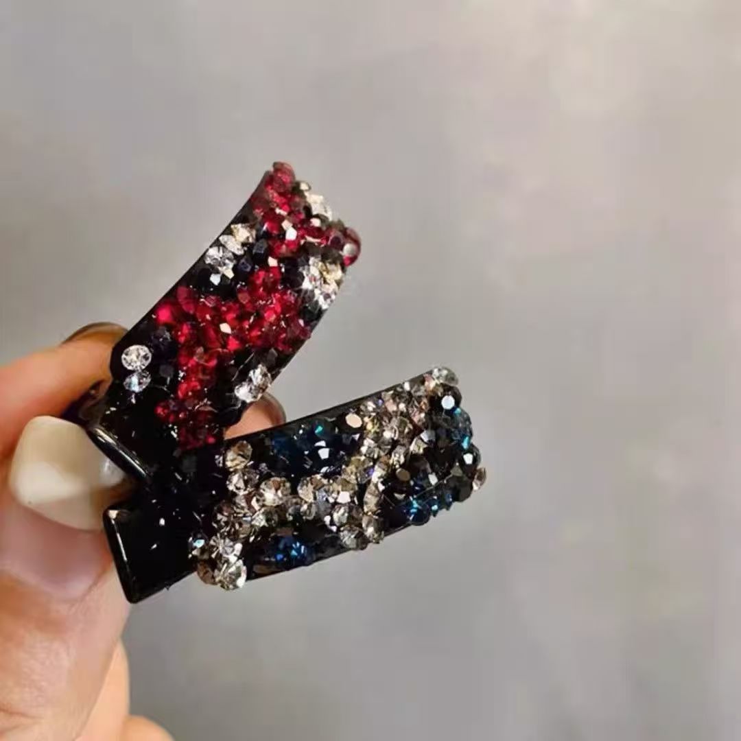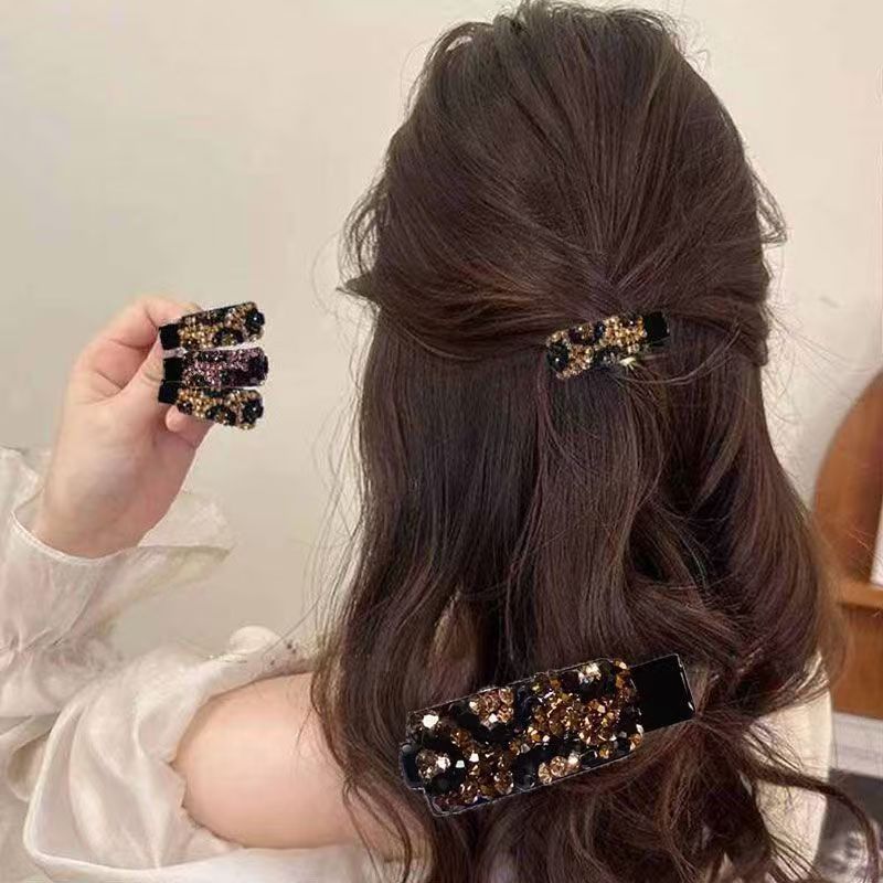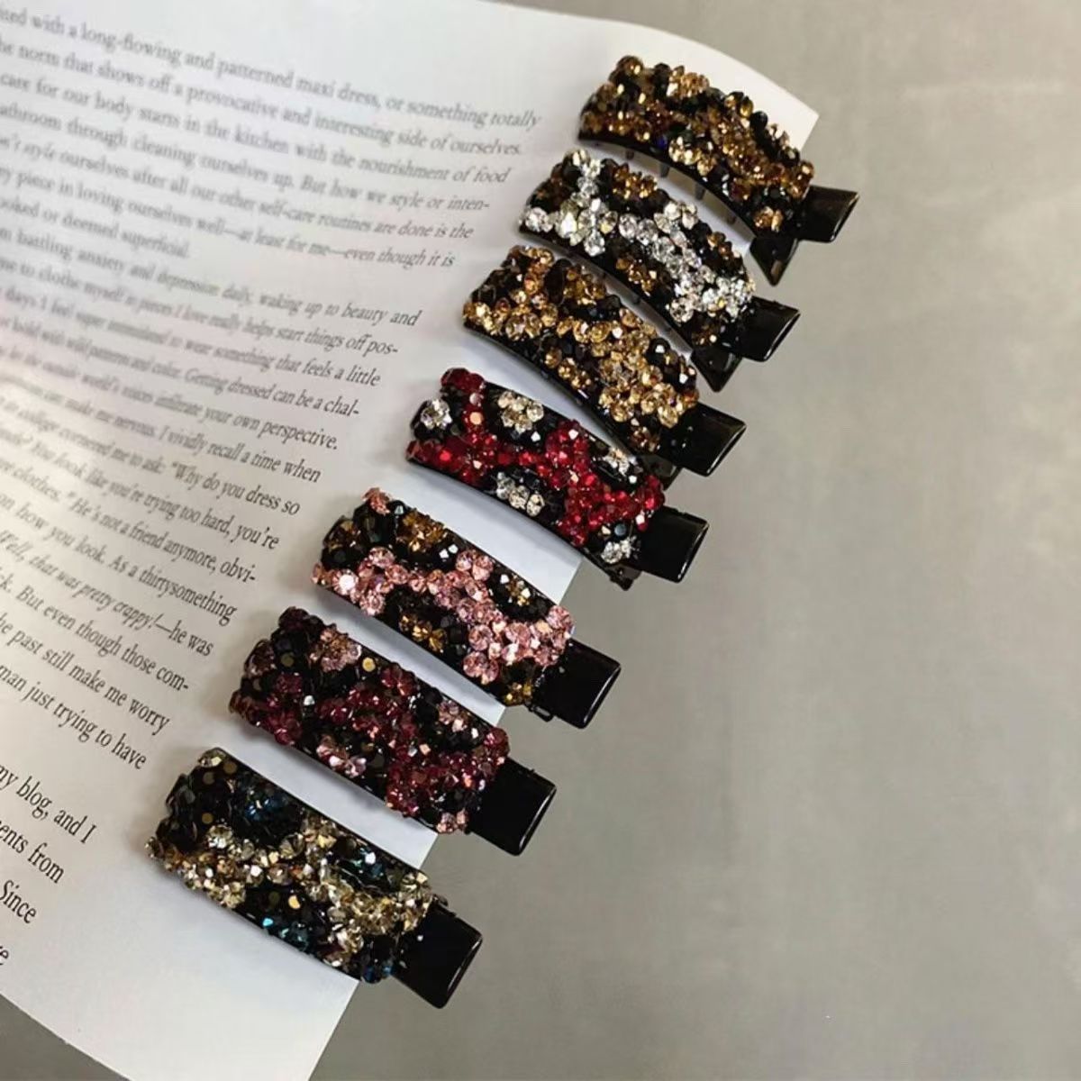 국경을 넘는 인기 컬러풀한 크리스탈 헤어핀 사이드 뱅 클립 2025 신상 라이트 럭셔리 크리스탈 헤어핀 덕빌 클립 헤어 액세서리