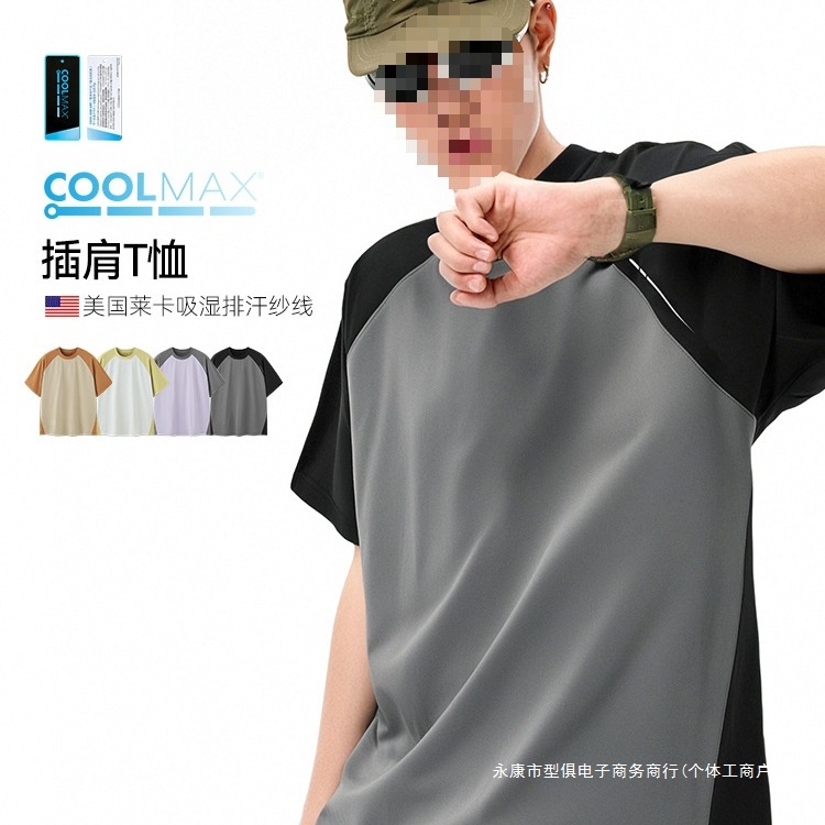 국경을 넘나드는 Jiezhan 남성복 | COOLMAX 래글런 티셔츠 2025 봄 여름 신제품 흡습 속건성 대비 색상 야외 등산