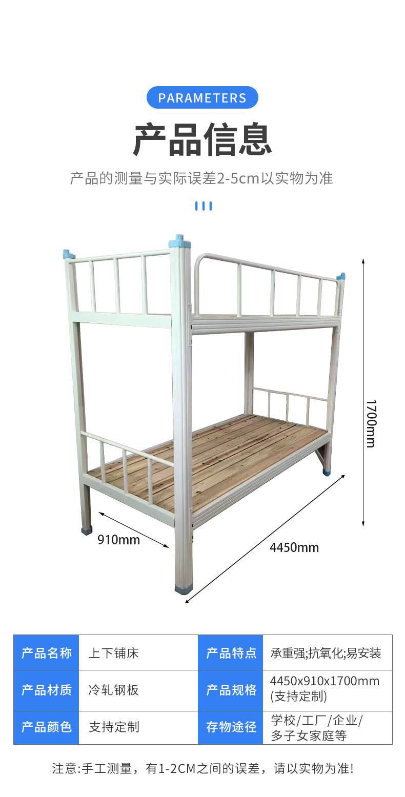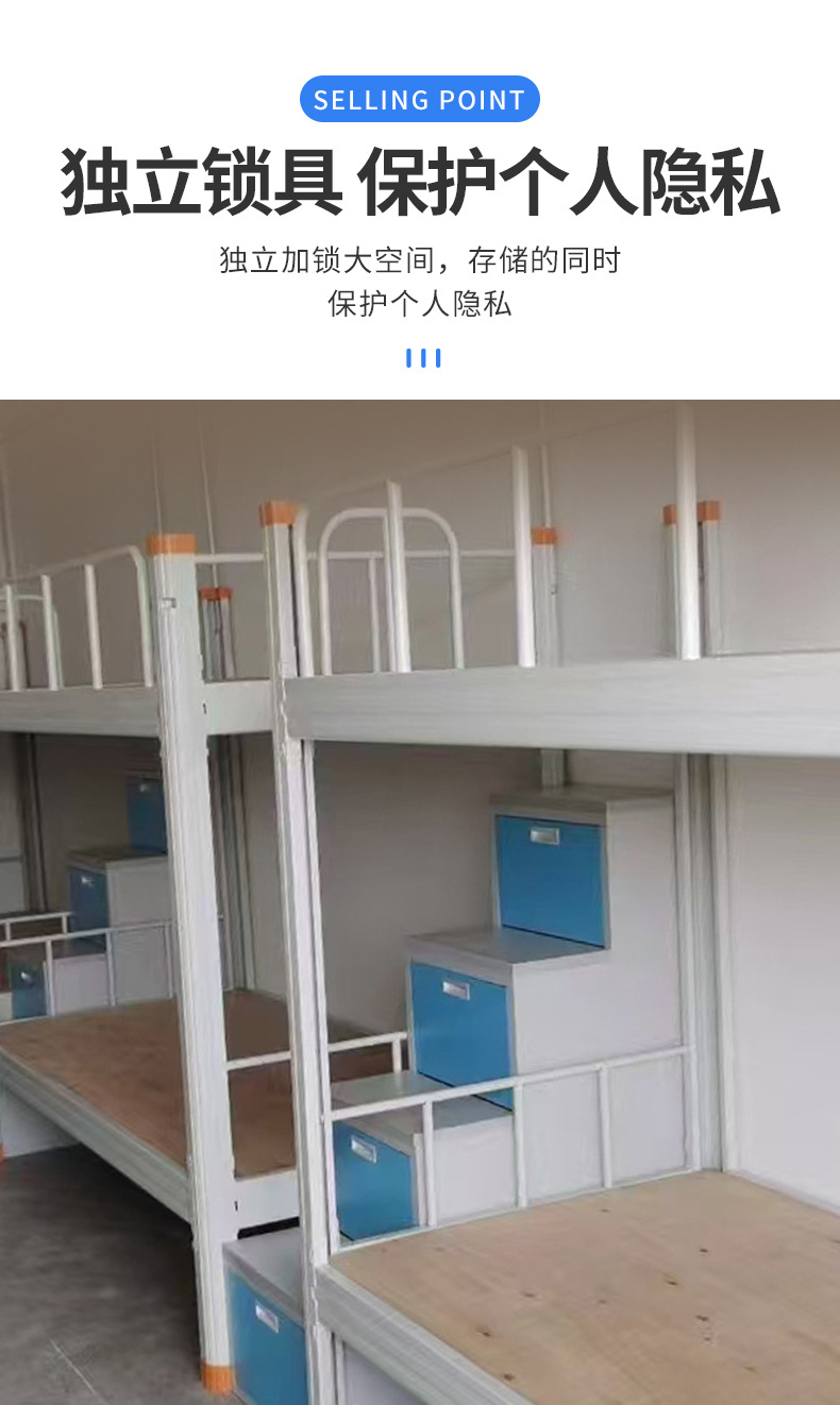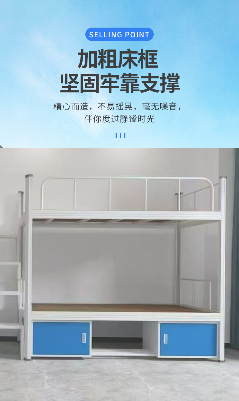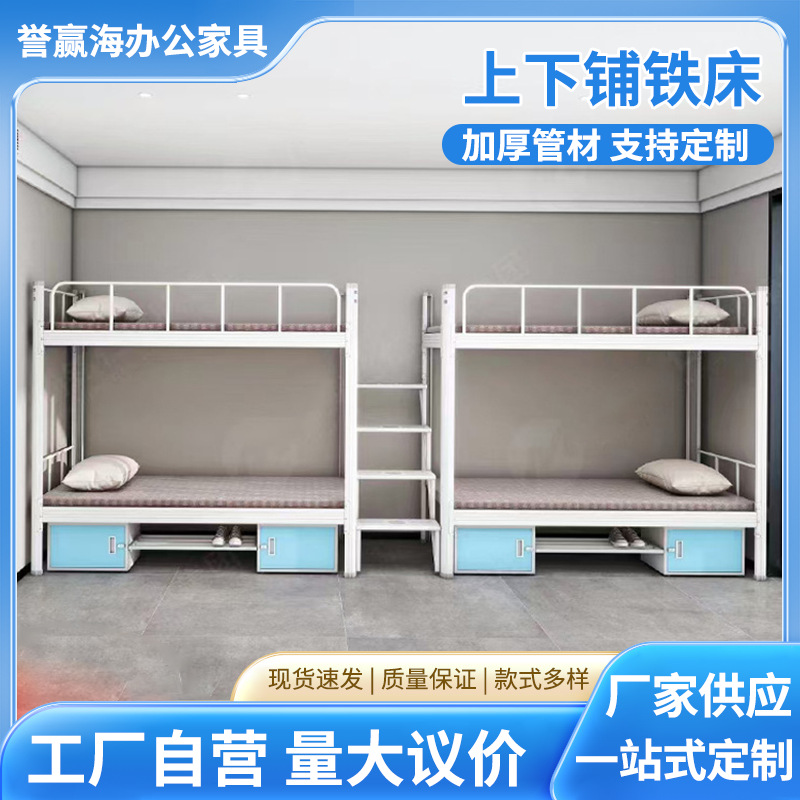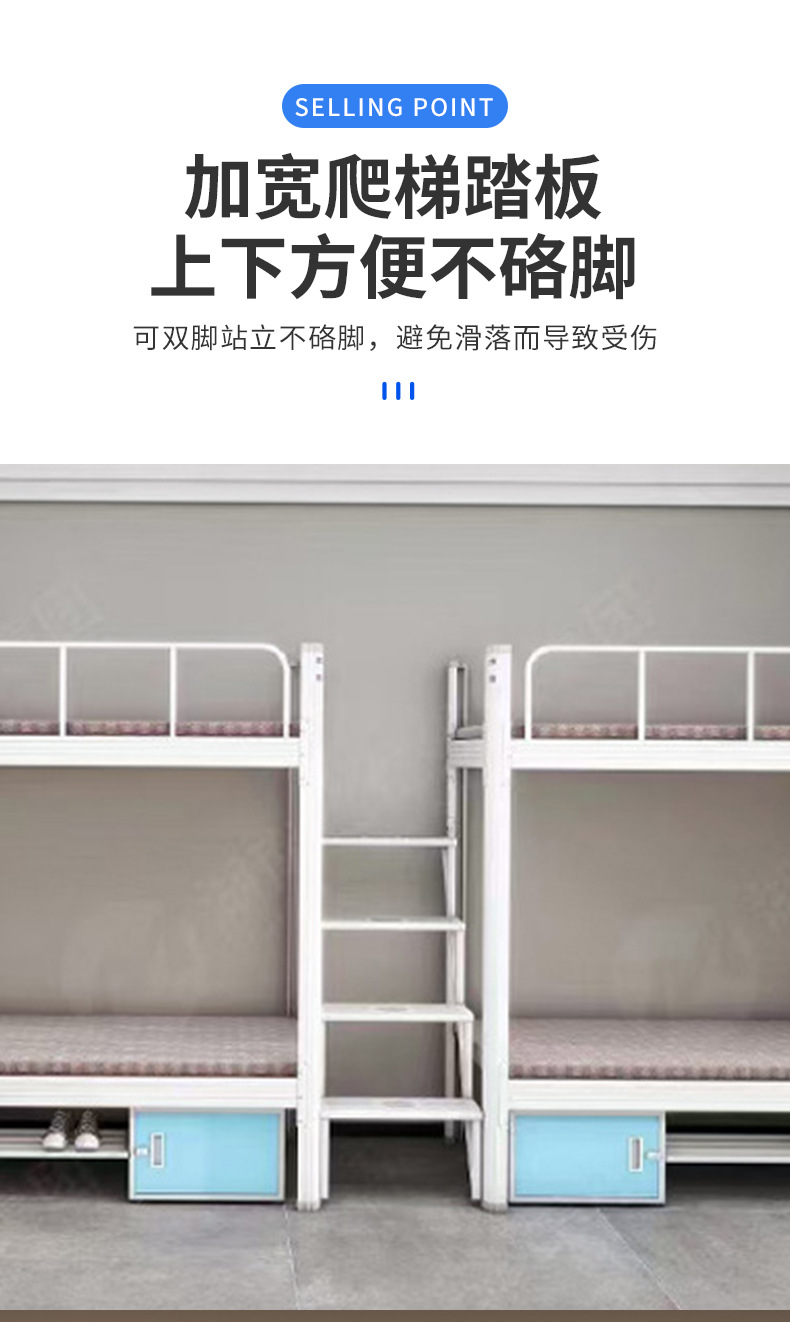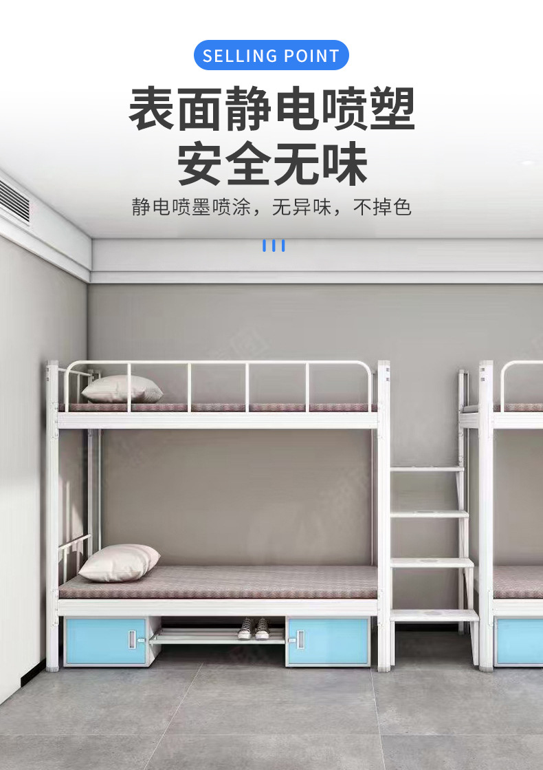 4인용 이층 철제 침대, 일체형 중간 사다리, 미끄럼 방지 냉간 압연 강철 소재, 학교 기숙사 재고 있음