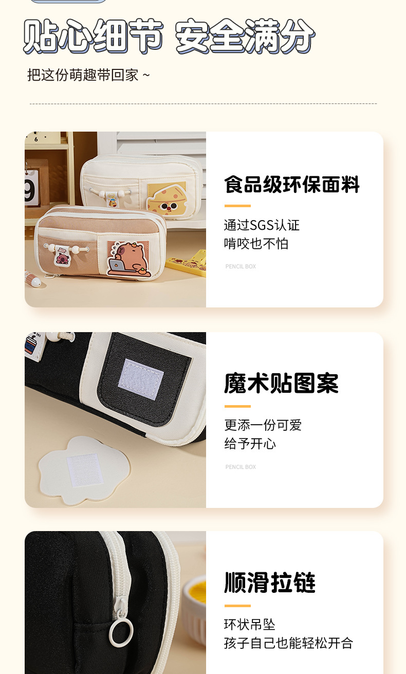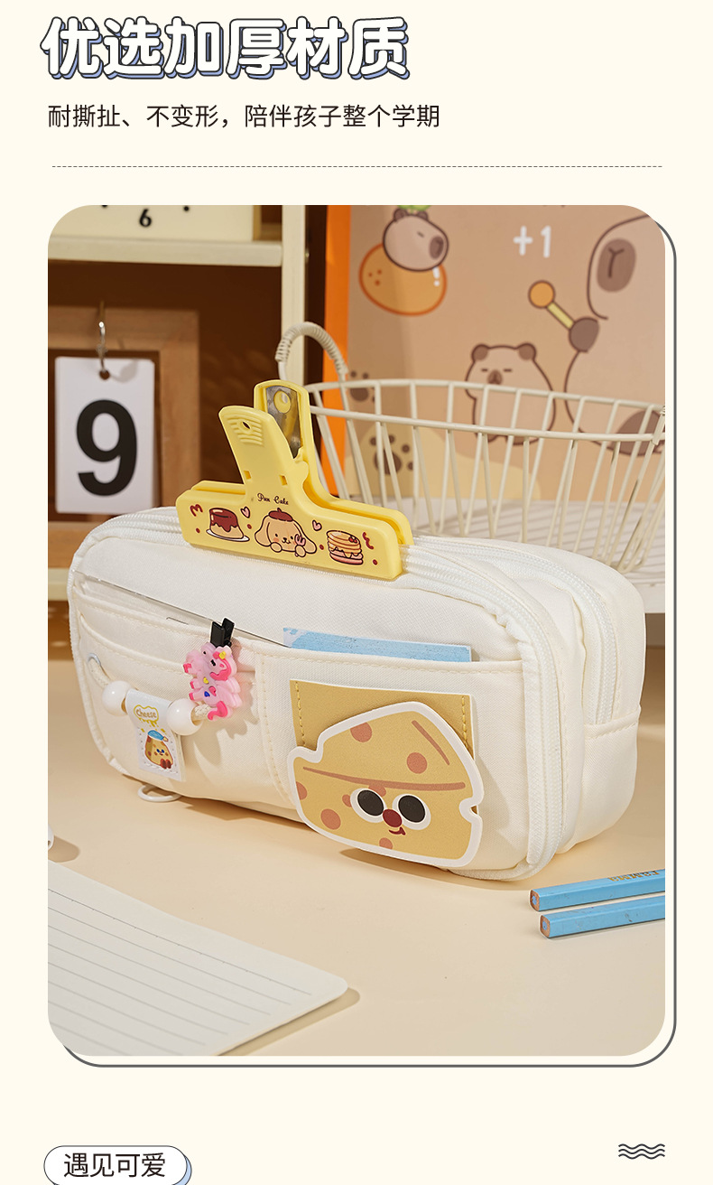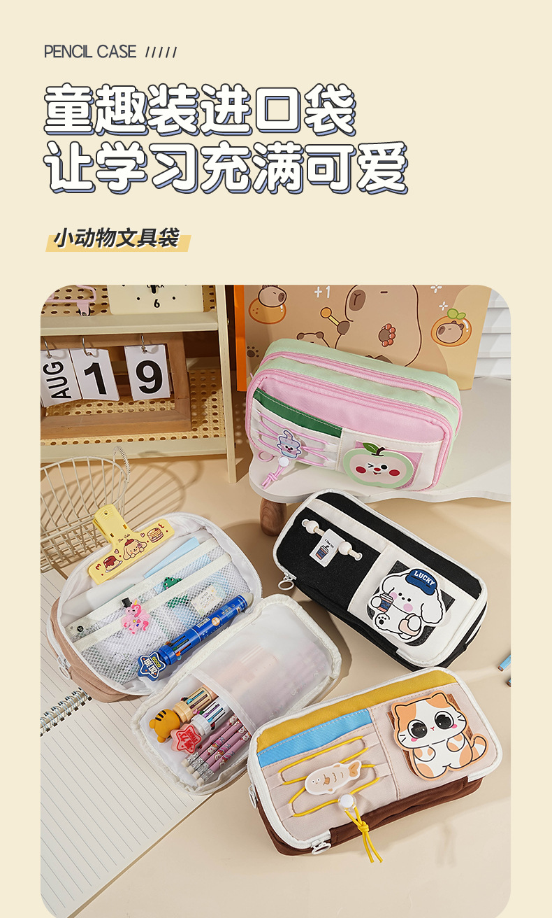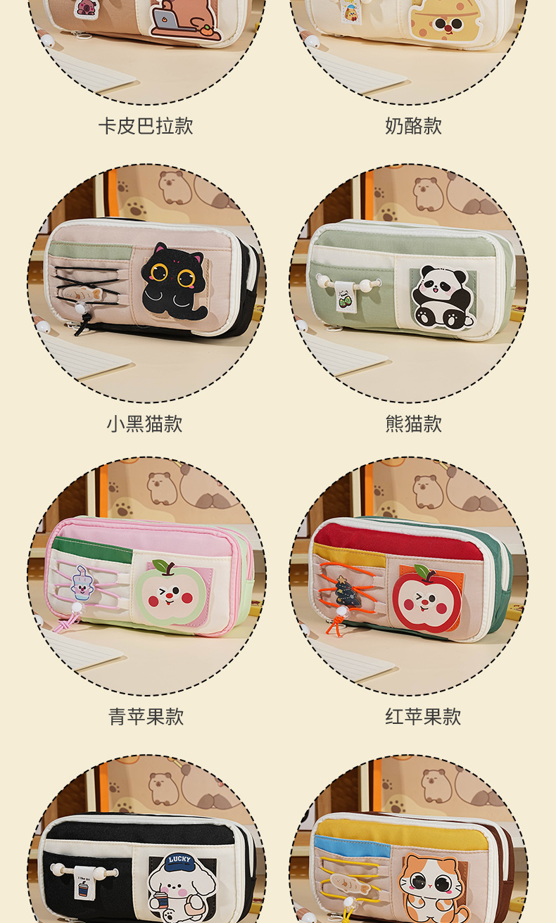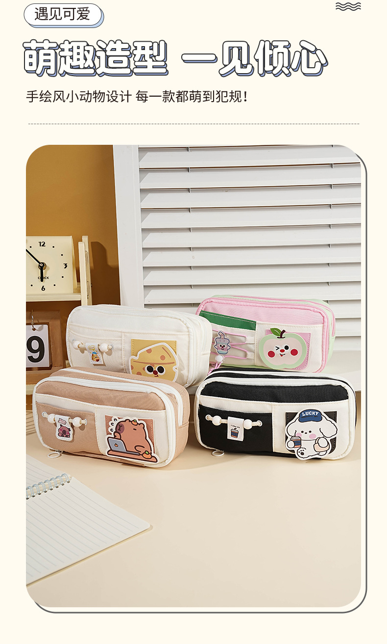 학생을 위한 새로운 Kapibala 벨크로 연필 가방, 귀여운 대용량 ins 스타일 고급스러운 소녀 하트 문구 가방
