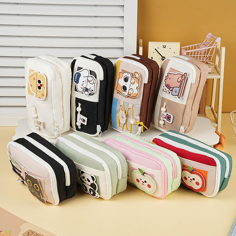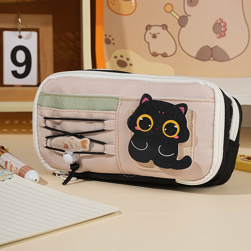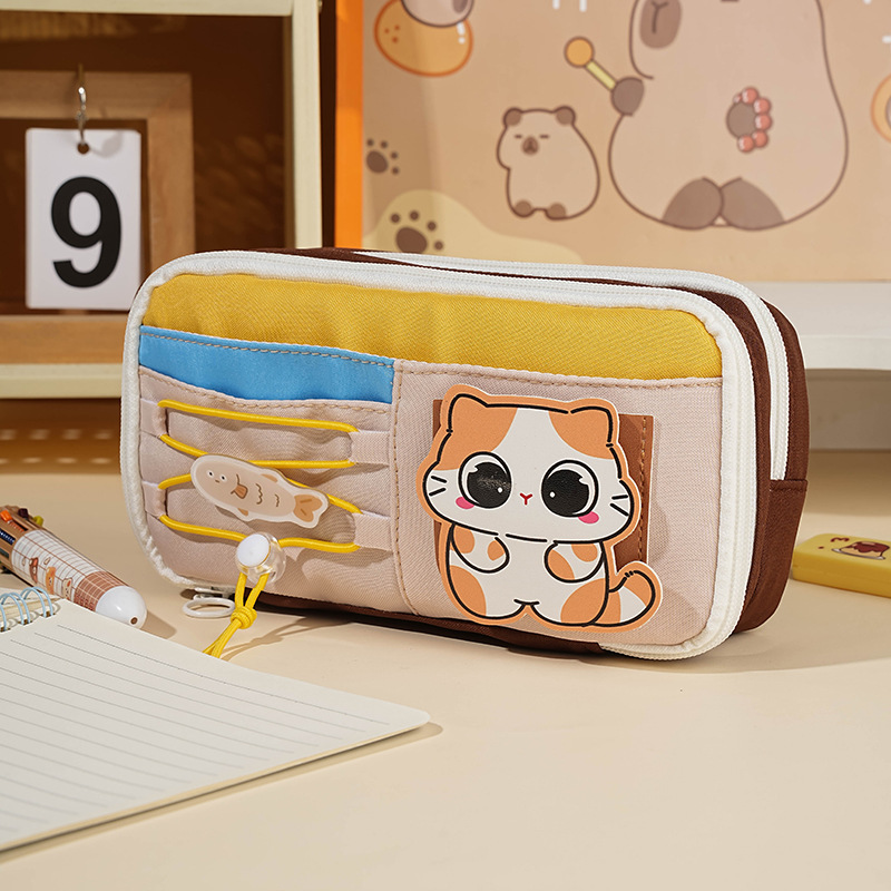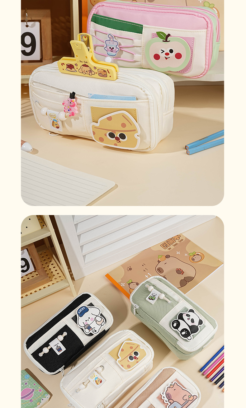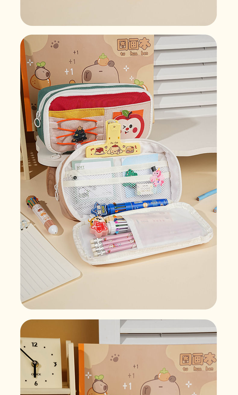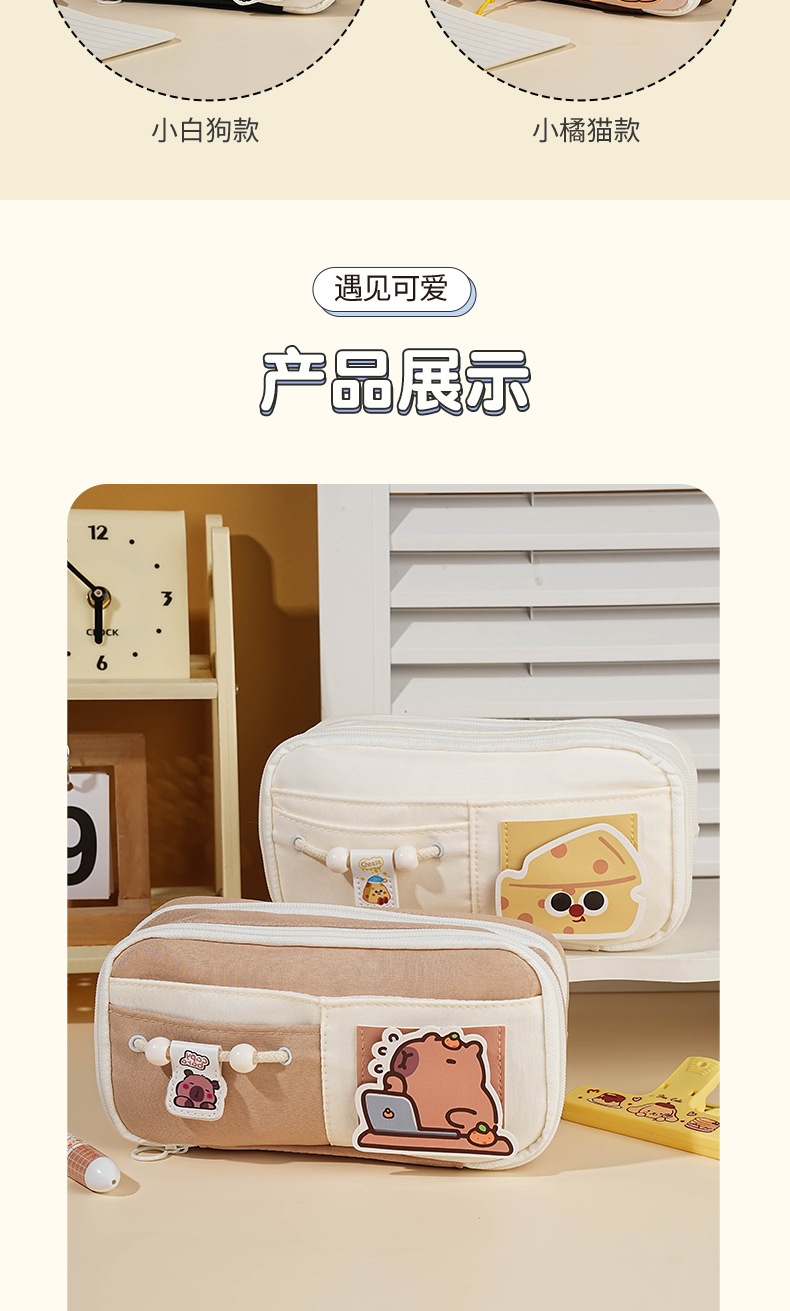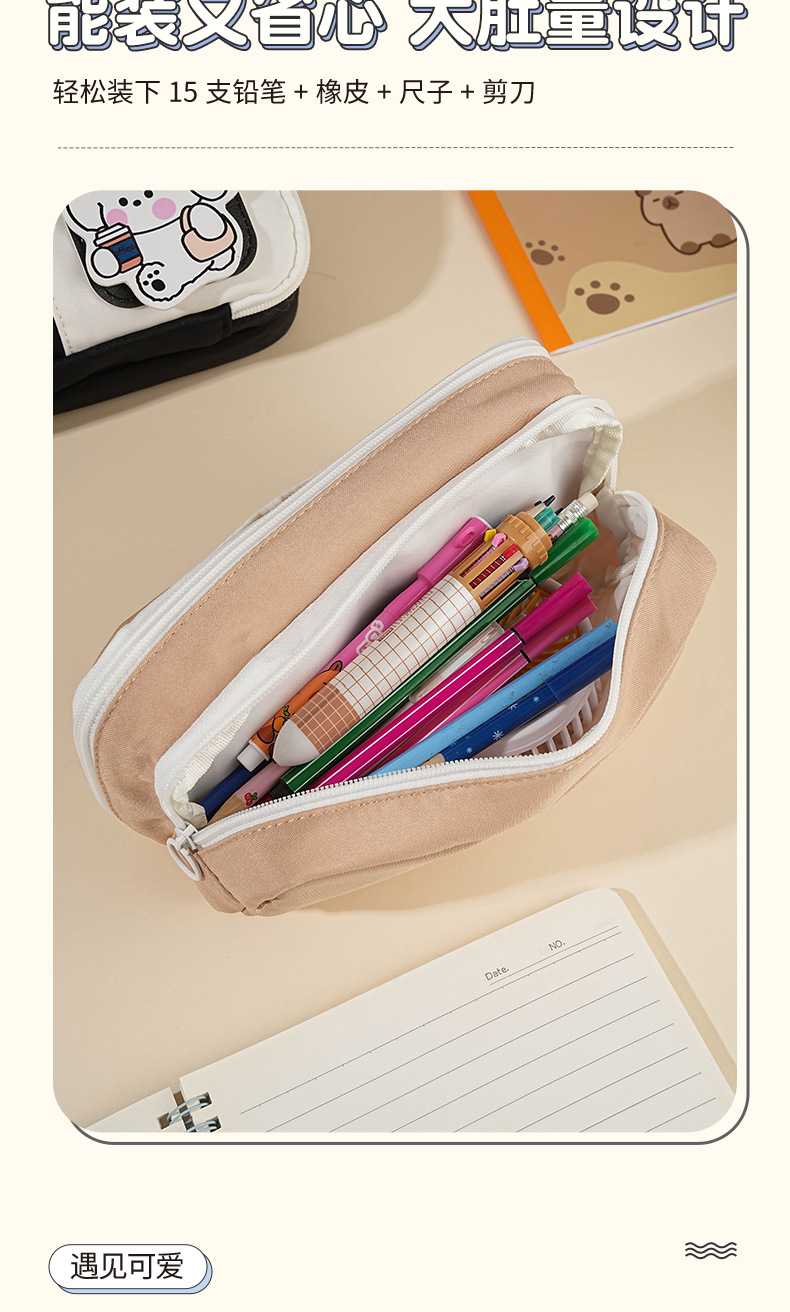 학생을 위한 새로운 Kapibala 벨크로 연필 가방, 귀여운 대용량 ins 스타일 고급스러운 소녀 하트 문구 가방
