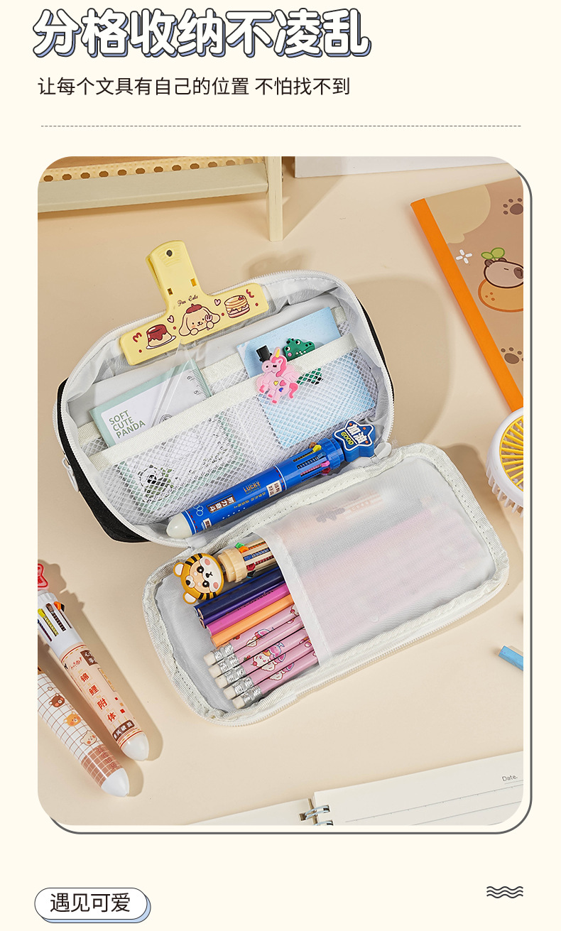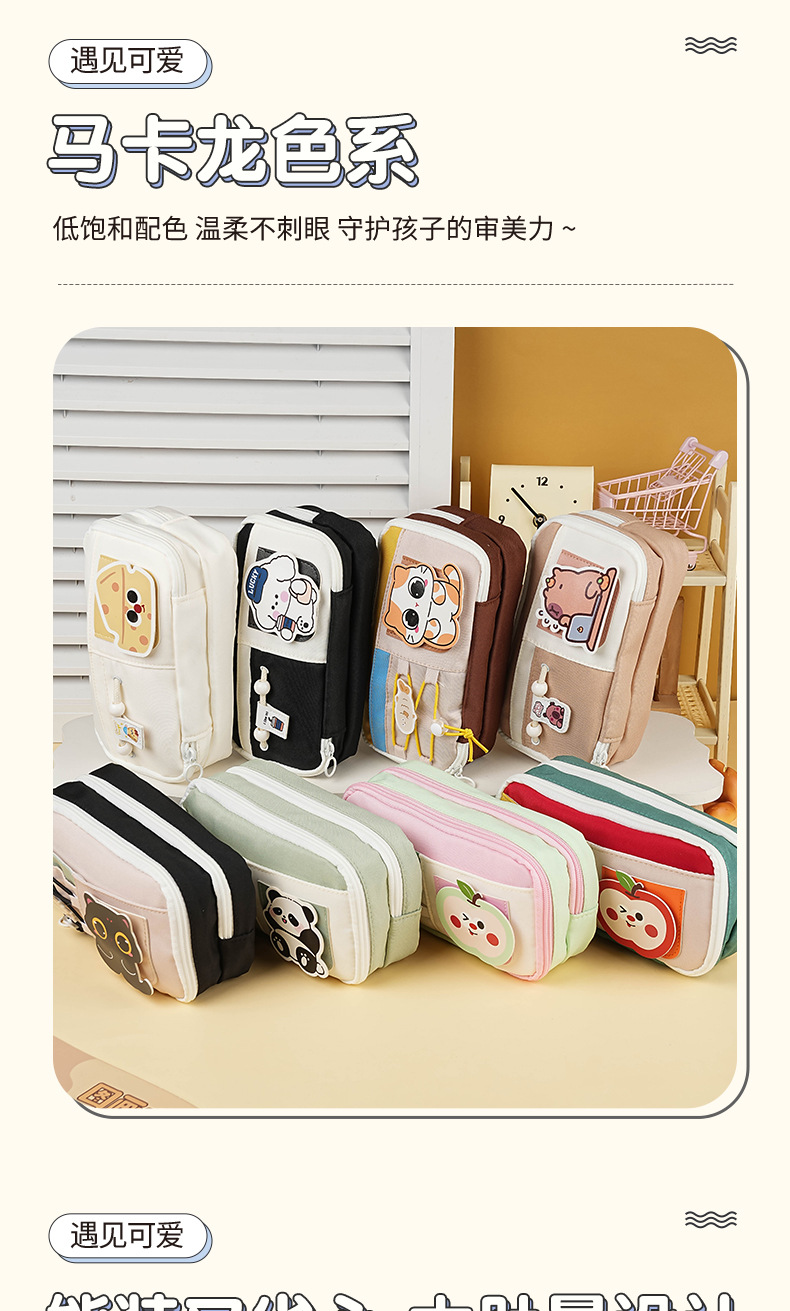 학생을 위한 새로운 Kapibala 벨크로 연필 가방, 귀여운 대용량 ins 스타일 고급스러운 소녀 하트 문구 가방스토어 가기