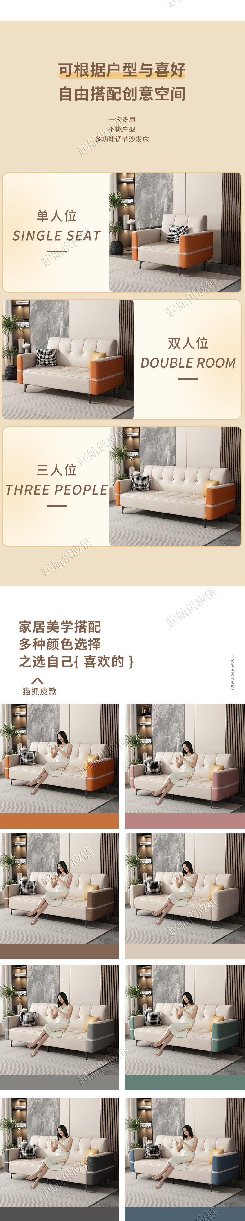 세탁하지 않는 고양이 발톱 가죽 작은 아파트 임대 주택 사무실 고급 가벼운 럭셔리 인터넷 연예인 모델 소파 침대 공장 직접 판매