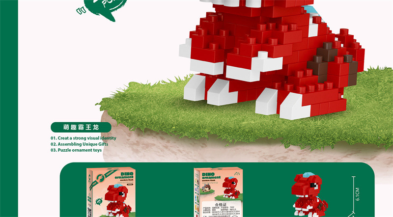 만화 동물 작은 공룡 조립 빌딩 블록 티라노사우루스 렉스 레고 장식품과 호환 어린이 장난감 선물 도매 국경 간