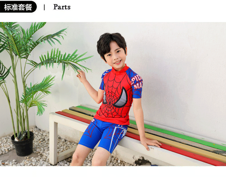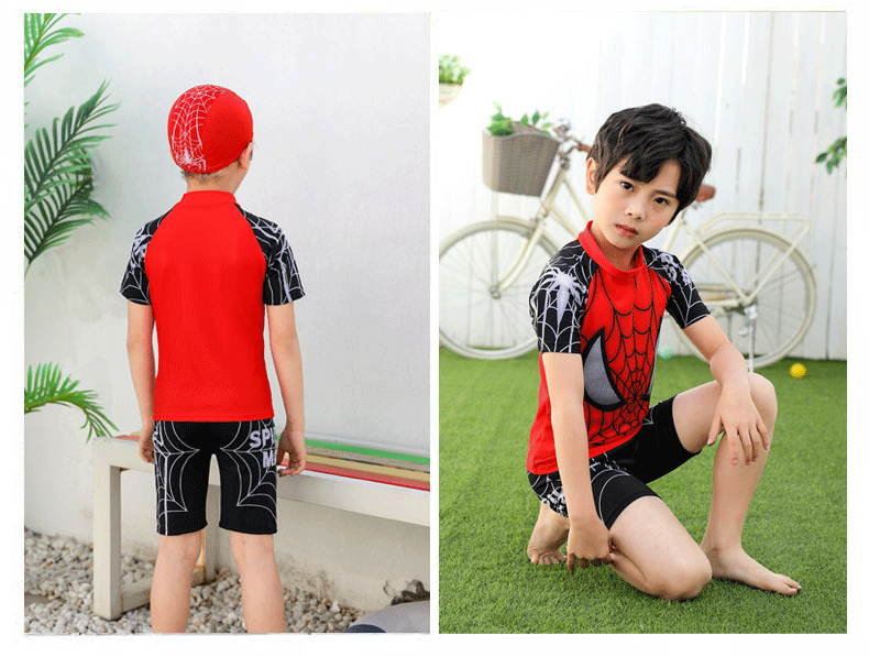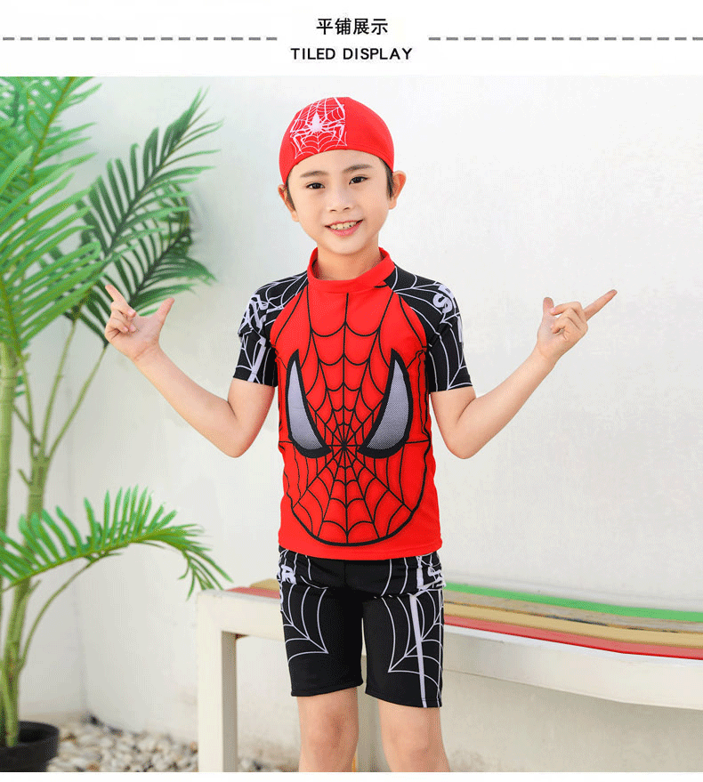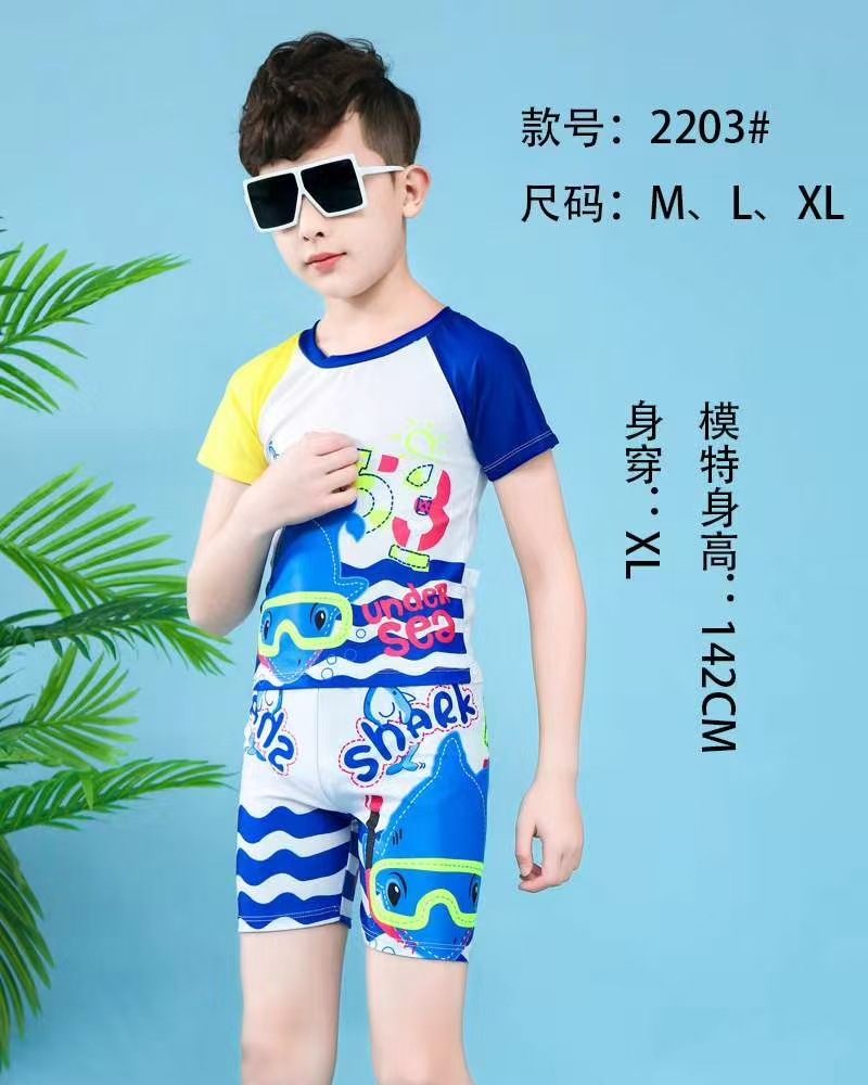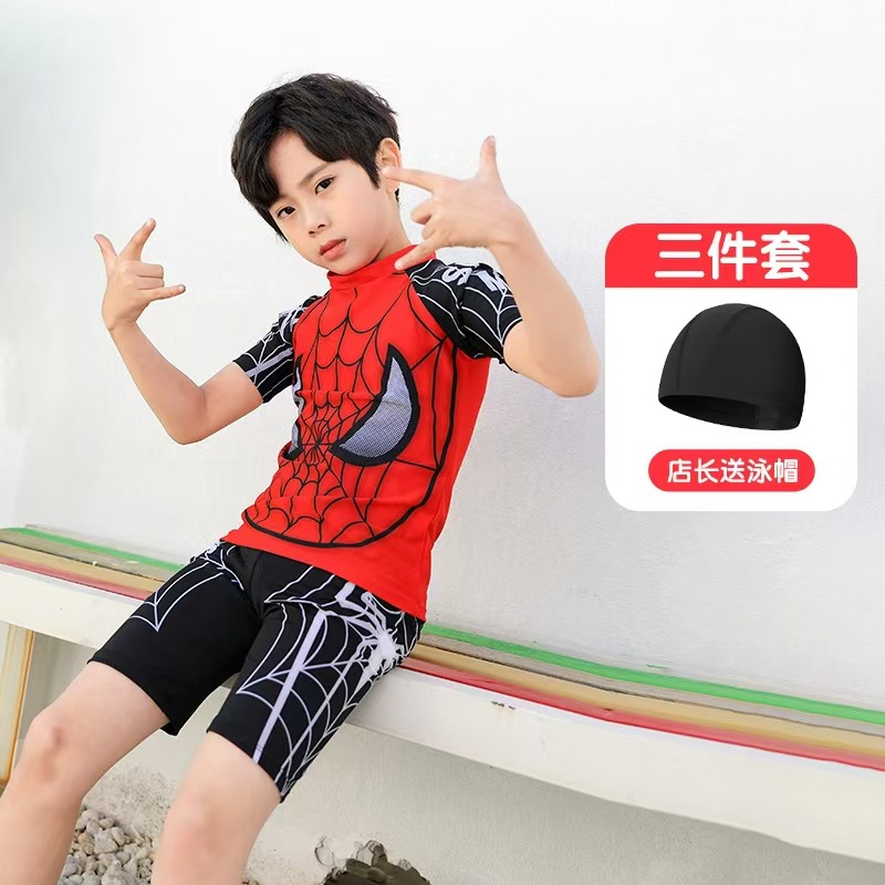 어린이 수영복 소년 캐주얼 스포츠 수영복 만화 해저 상어 중대형 어린이 학생 스플릿 투피스 수영 모자