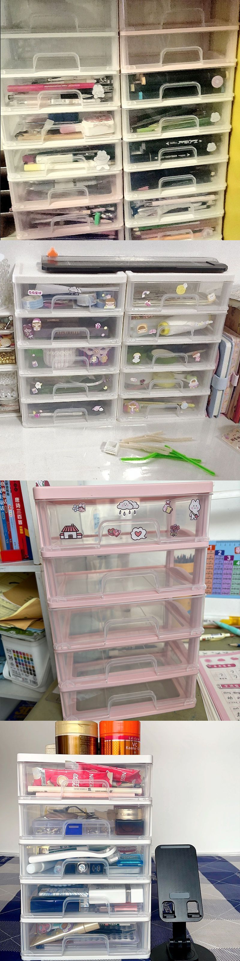 Ins 스타일 문구 보관 상자 대용량 서랍 투명 칸막이 만화 학생 기숙사 책상 잔해물 보관 캐비닛스토어 가기