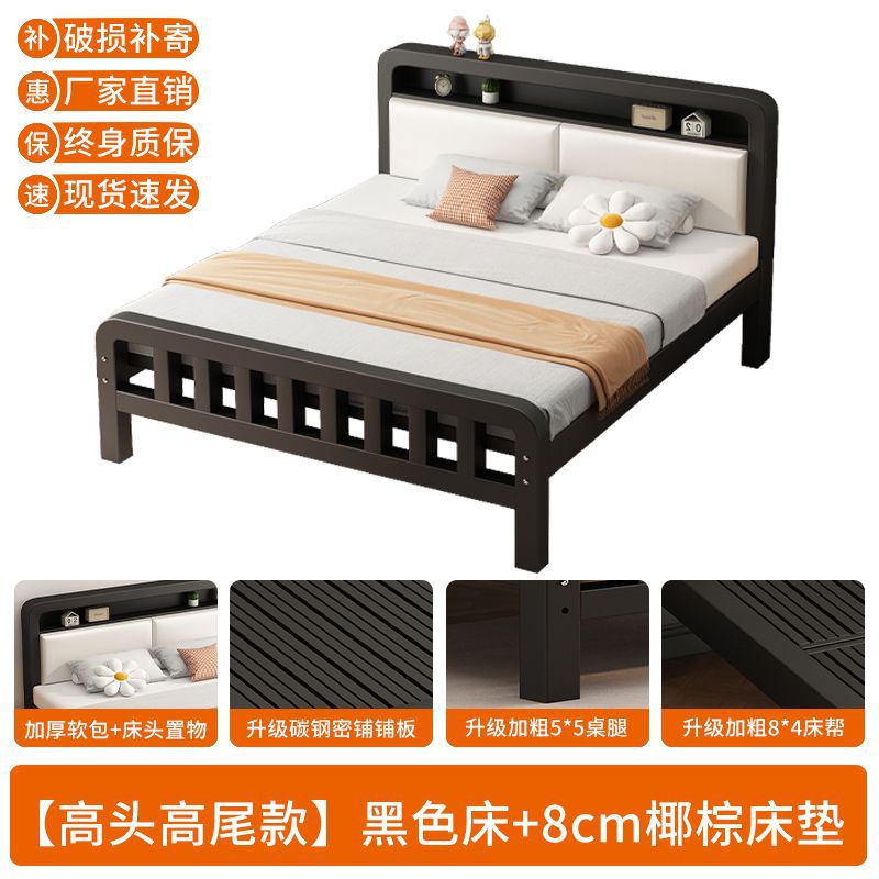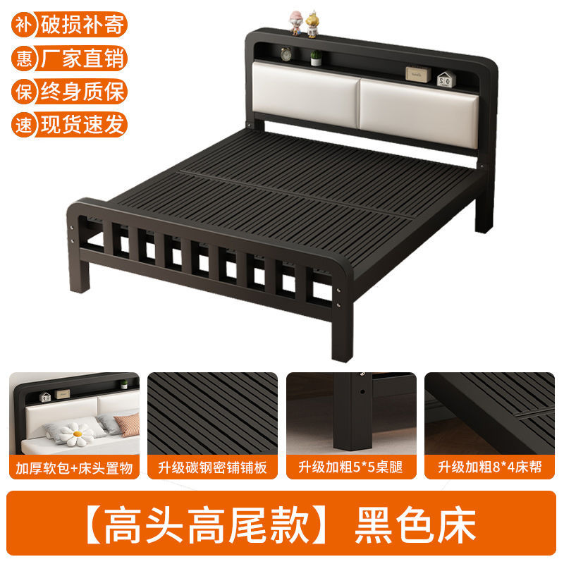 유럽식 철제 침대 1.8m 강화 및 두꺼운 더블 침대 1m 가정용 싱글 침대 스테인레스 스틸 임대 주택 철제 프레임 침대