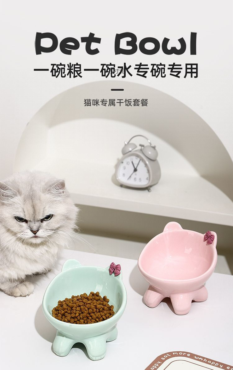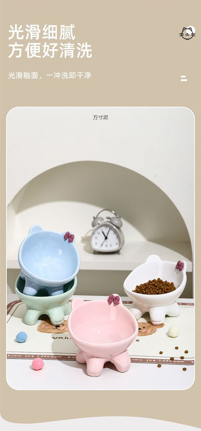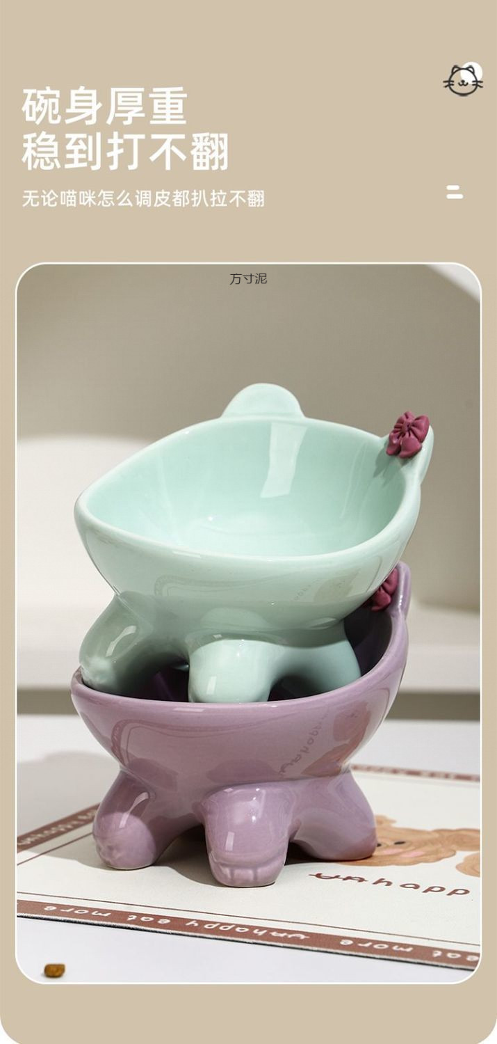 세라믹 고양이와 강아지 밥그릇, 목보호대, 경사진 물그릇, 발이 높은 귀여운 애완고양이 그릇, 뒤집힘 방지 공장