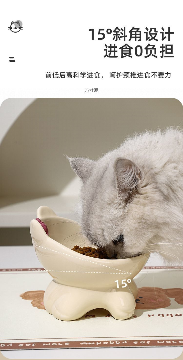 세라믹 고양이와 강아지 밥그릇, 목보호대, 경사진 물그릇, 발이 높은 귀여운 애완고양이 그릇, 뒤집힘 방지 공장스토어 가기