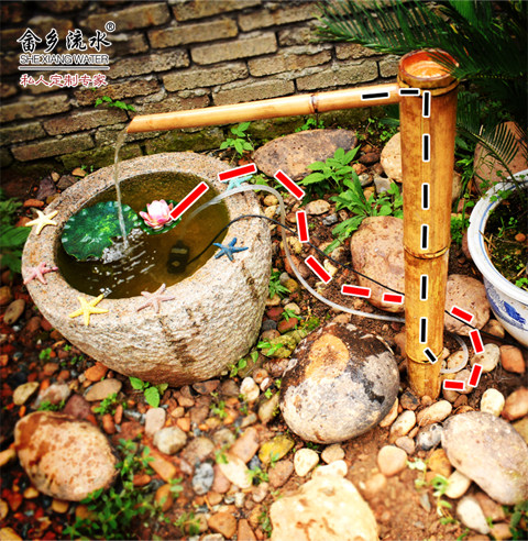 일본식 대나무 물 장식품, 안뜰 대나무 장식, 수조 돌로, 순환하는 물 분수, 대나무 물 장치