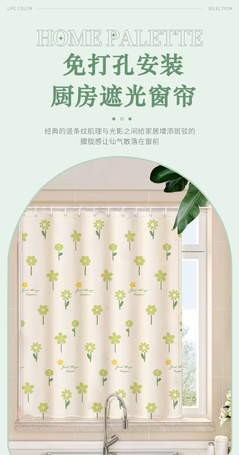 간단한 커튼 걸이 링 설치 반 차광 만화 베드룸 창 작은 짧은 창 임대 주택 걸이 링 가정용 작은 창