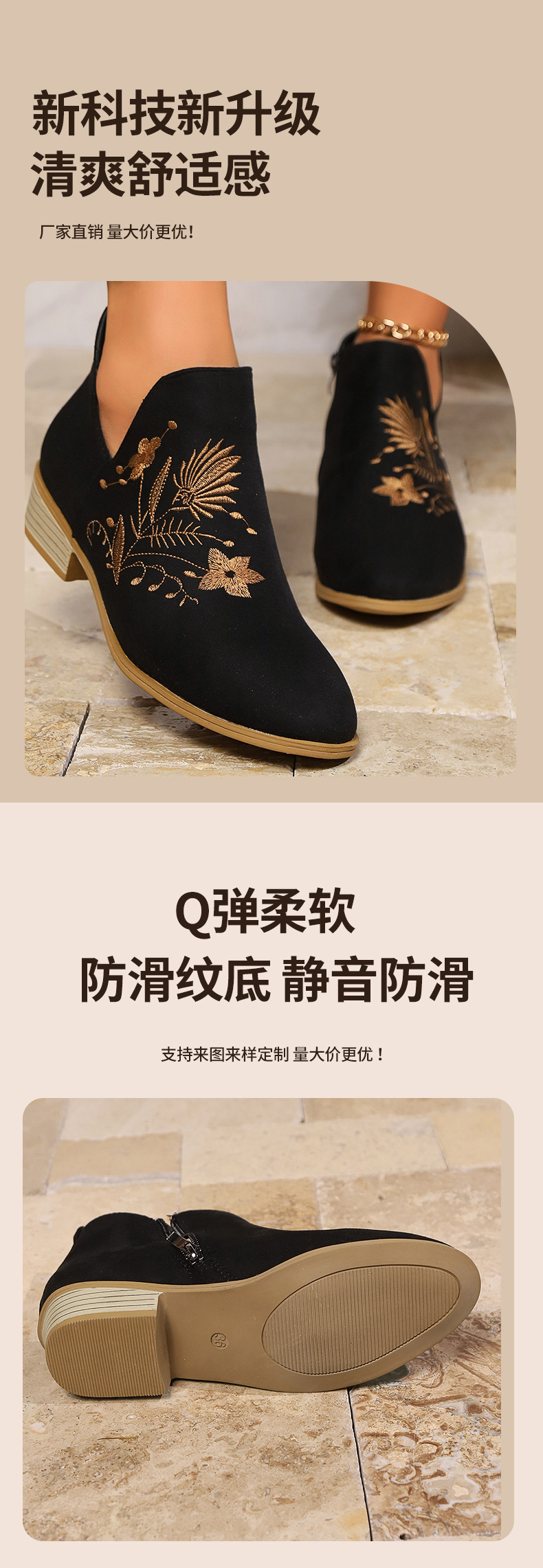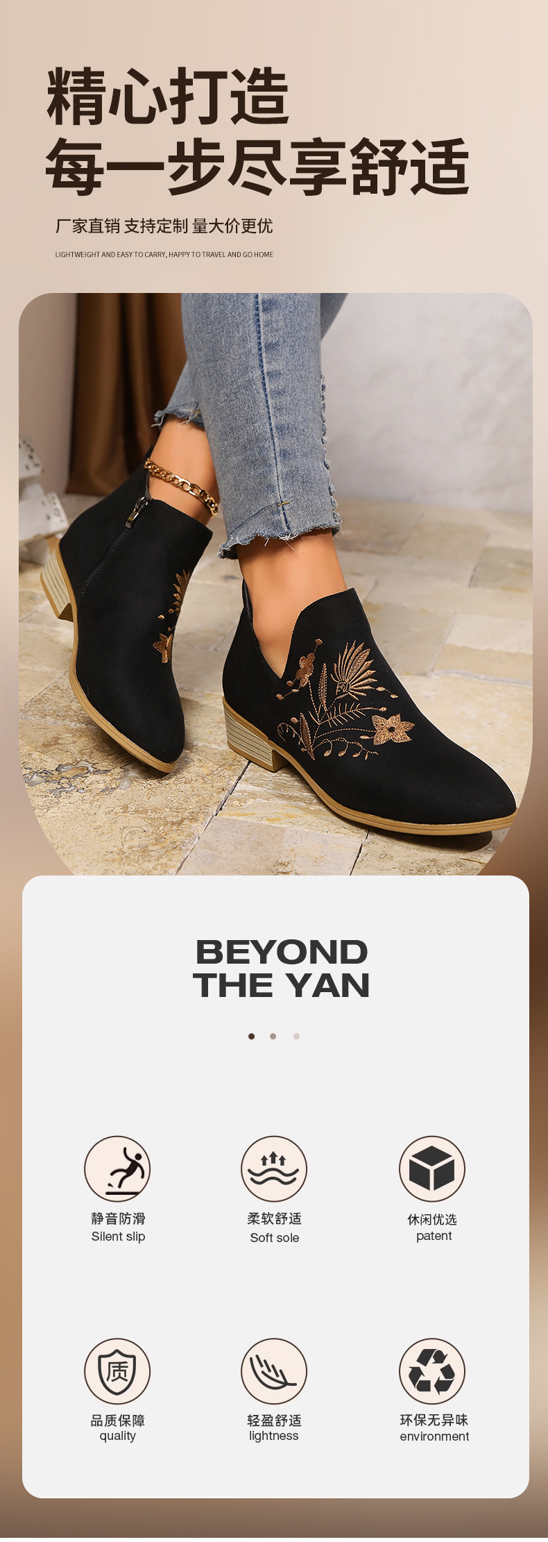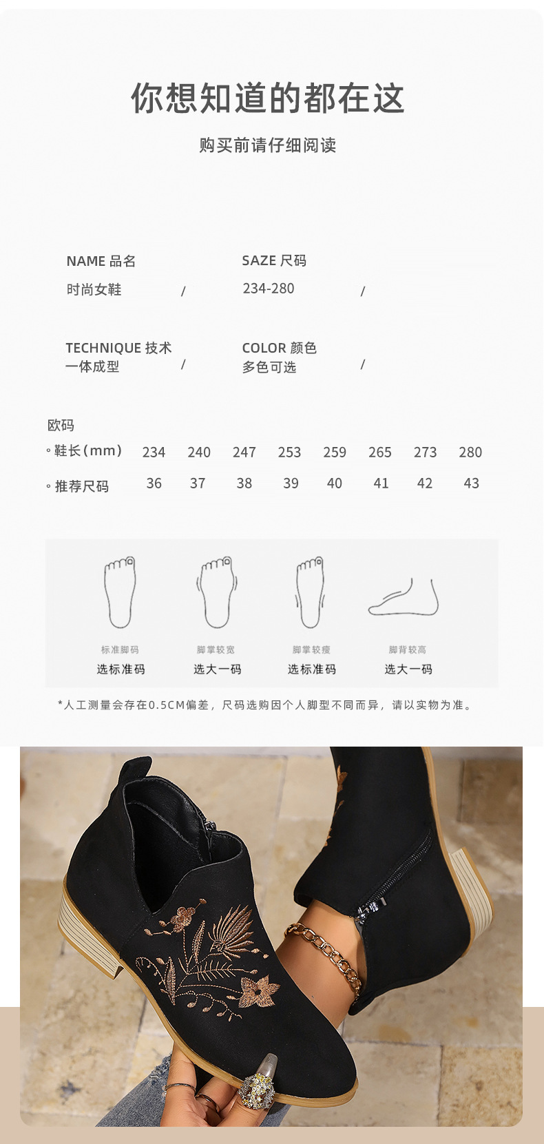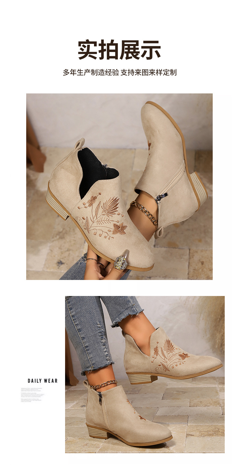 2025 대외 무역 가을 새로운 대형 자수 마틴 부츠 여성 유럽과 미국 스타일의 두꺼운 굽 사이드 지퍼 여성 짧은 부츠스토어 가기