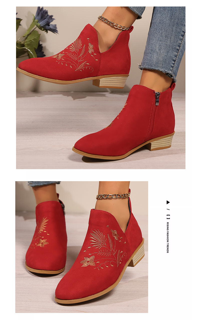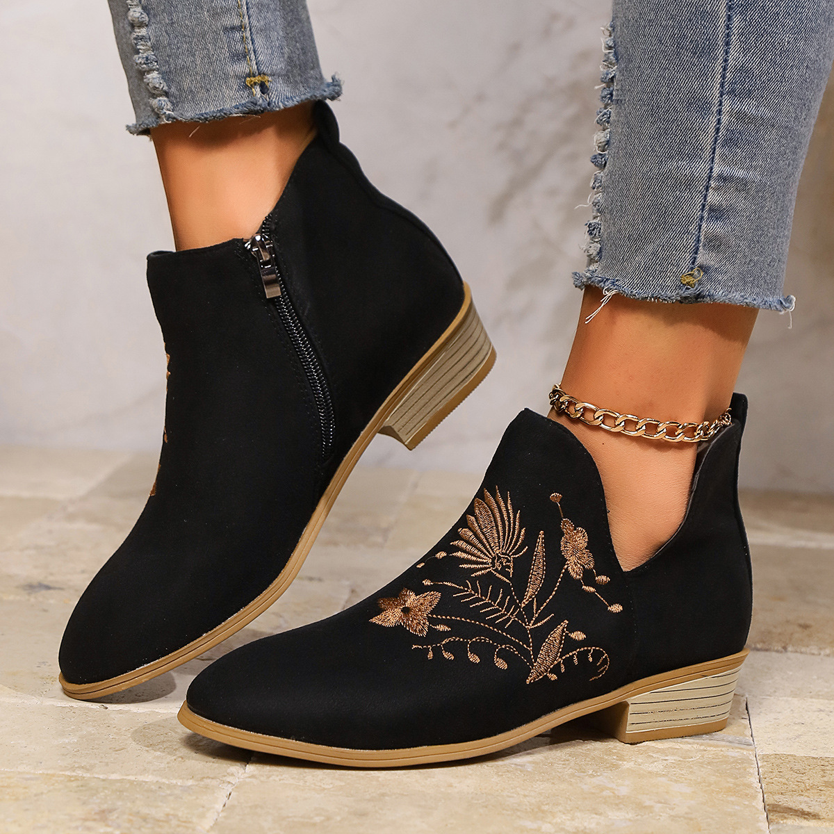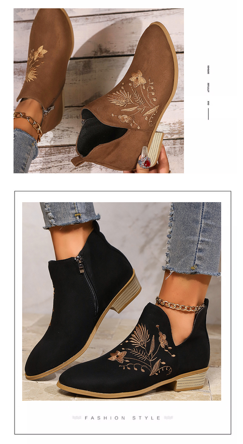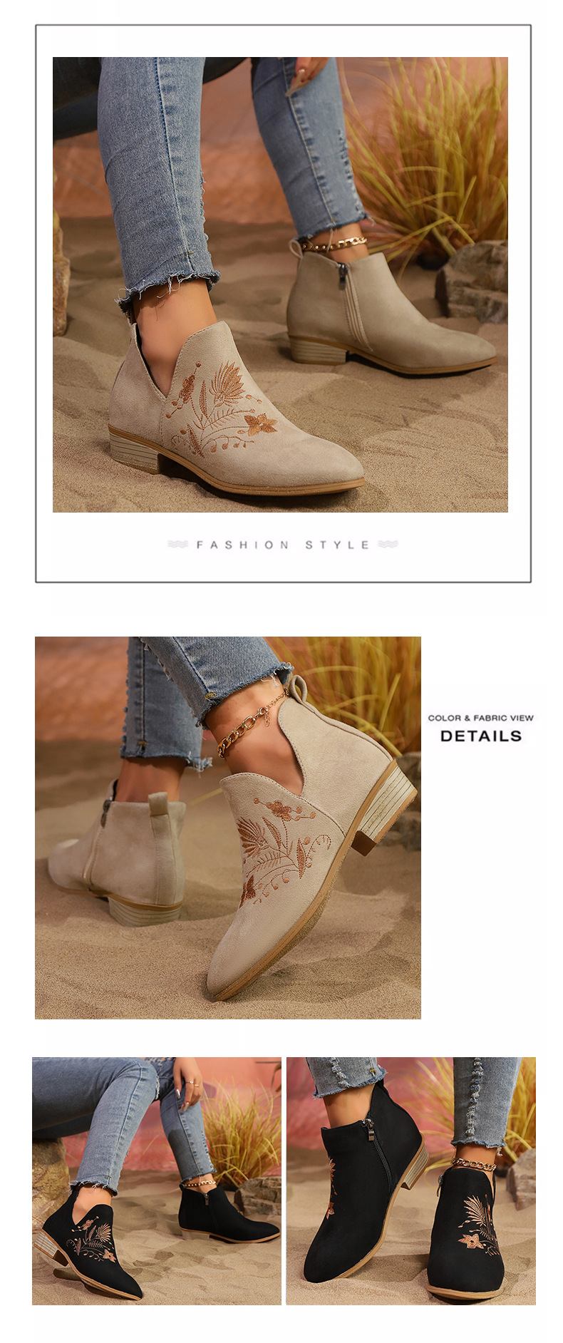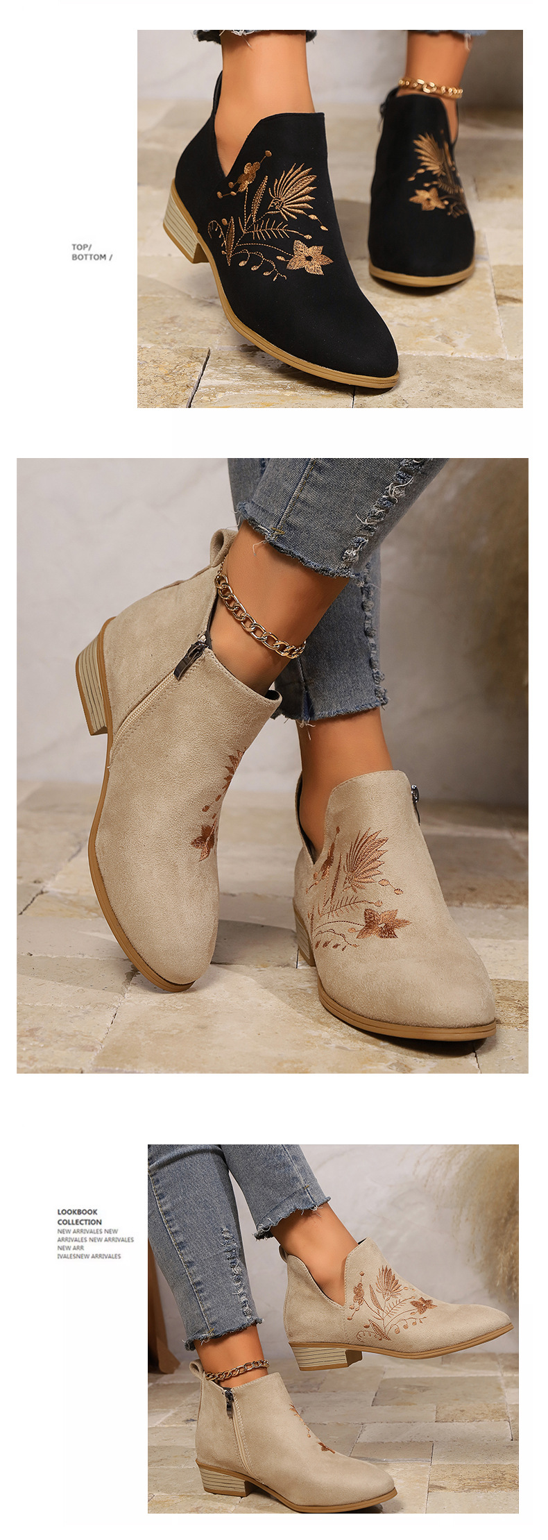 2025 대외 무역 가을 새로운 대형 자수 마틴 부츠 여성 유럽과 미국 스타일의 두꺼운 굽 사이드 지퍼 여성 짧은 부츠스토어 가기