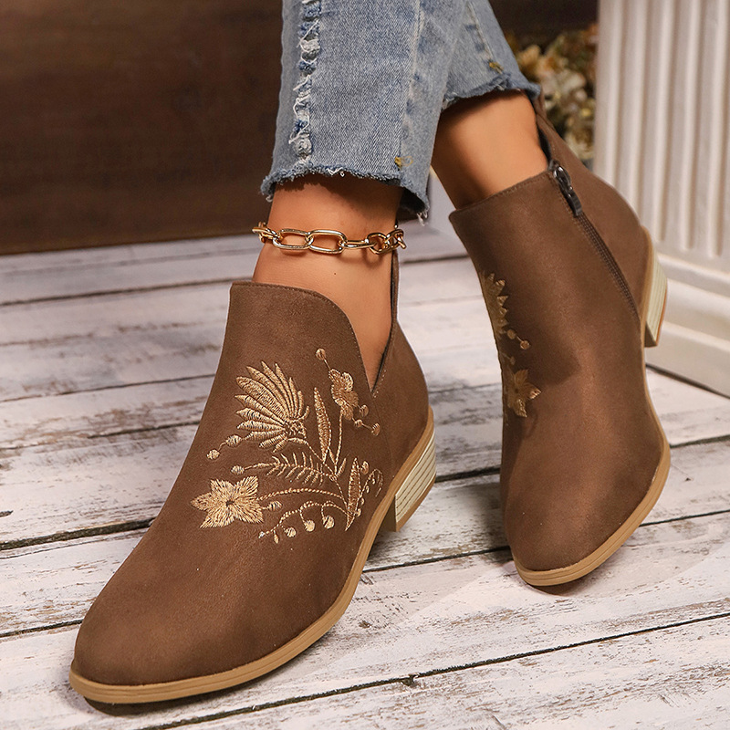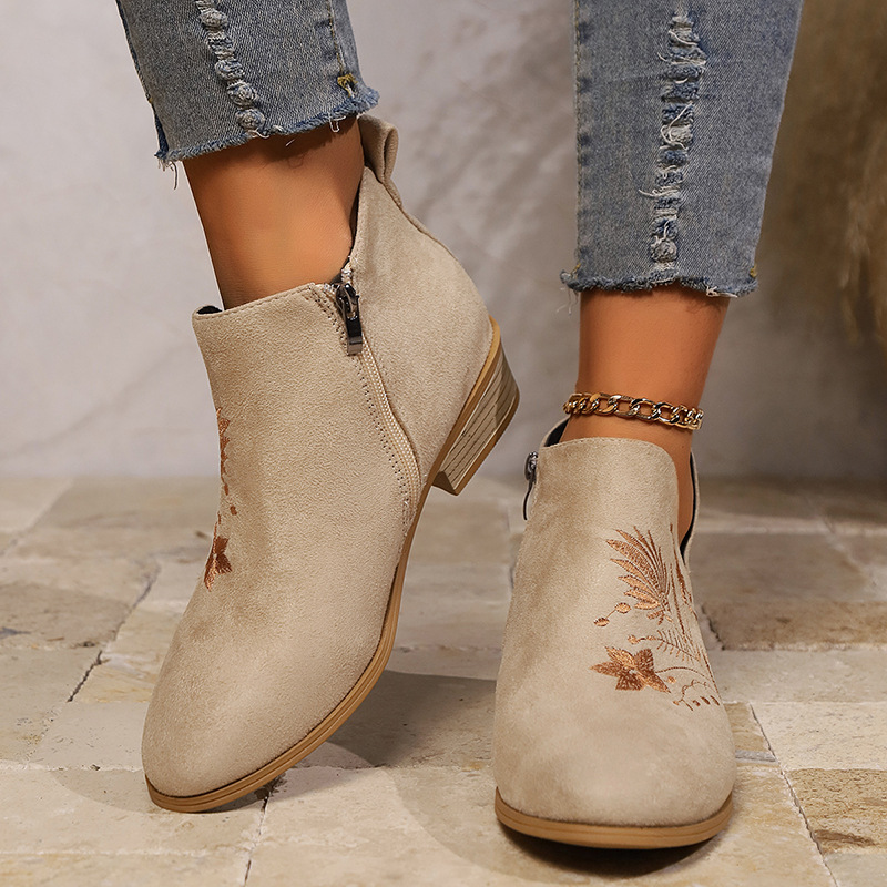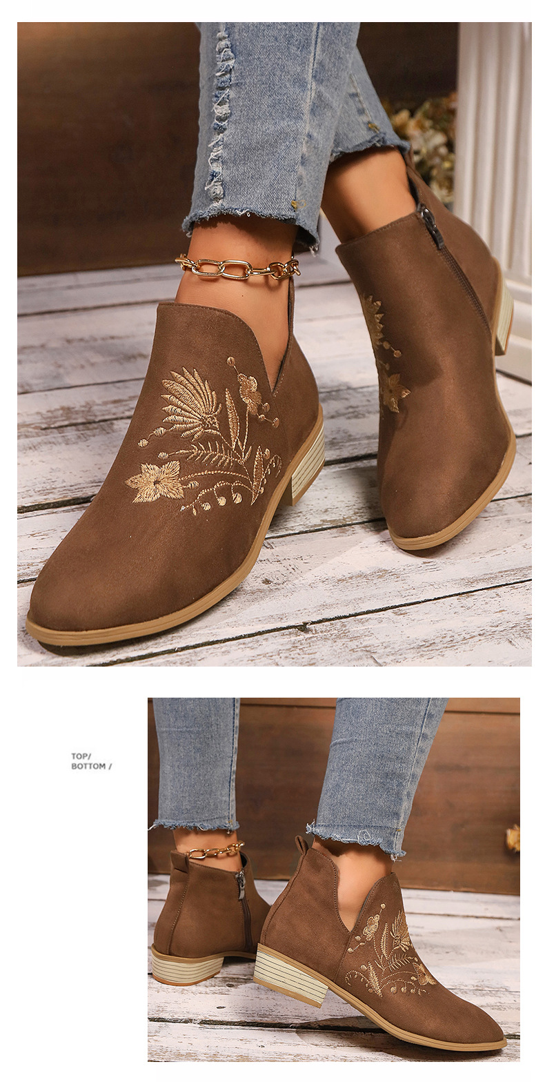 2025 대외 무역 가을 새로운 대형 자수 마틴 부츠 여성 유럽과 미국 스타일의 두꺼운 굽 사이드 지퍼 여성 짧은 부츠