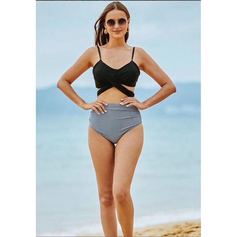 유럽과 미국의 뜨거운 소녀들을 위한 단색 스플릿 수영복, 섹시한 순수한 욕망 비키니, 국경 간 대외 무역 해변 휴가 레저 수영복