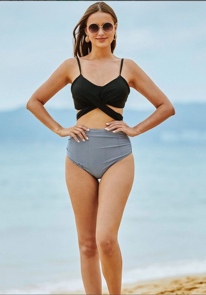 유럽과 미국의 뜨거운 소녀들을 위한 단색 스플릿 수영복, 섹시한 순수한 욕망 비키니, 국경 간 대외 무역 해변 휴가 레저 수영복스토어 가기