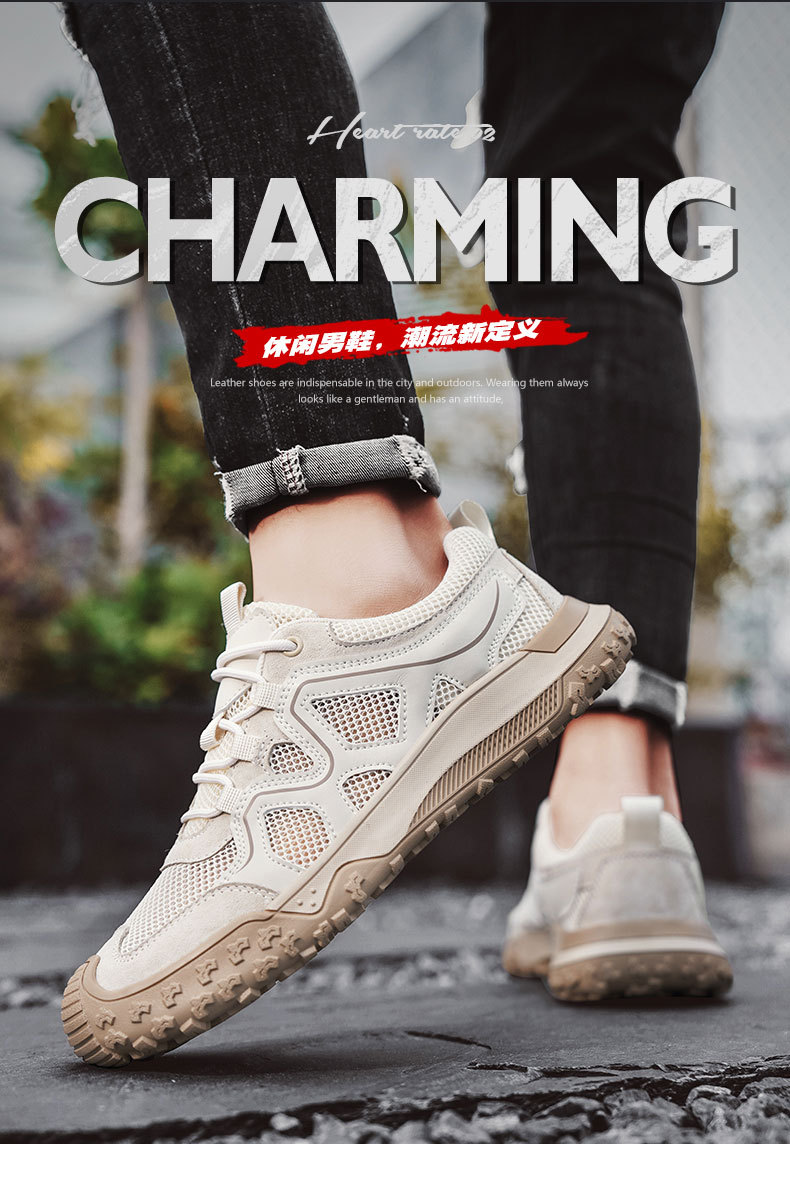 여름 신작 남성용 야외 로우탑 소프트 솔 통기성 메쉬 하이킹 및 등산화, 다용도 미끄럼 방지 운전 캐주얼 신발