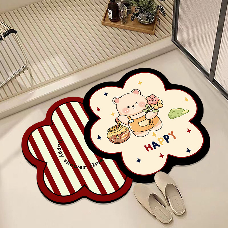 욕실 규조토 진흙 바닥 매트 만화 귀여운 흡수성 바닥 매트 홈 욕실 화장실 얼룩 방지 미끄럼 방지 바닥 매트 카펫