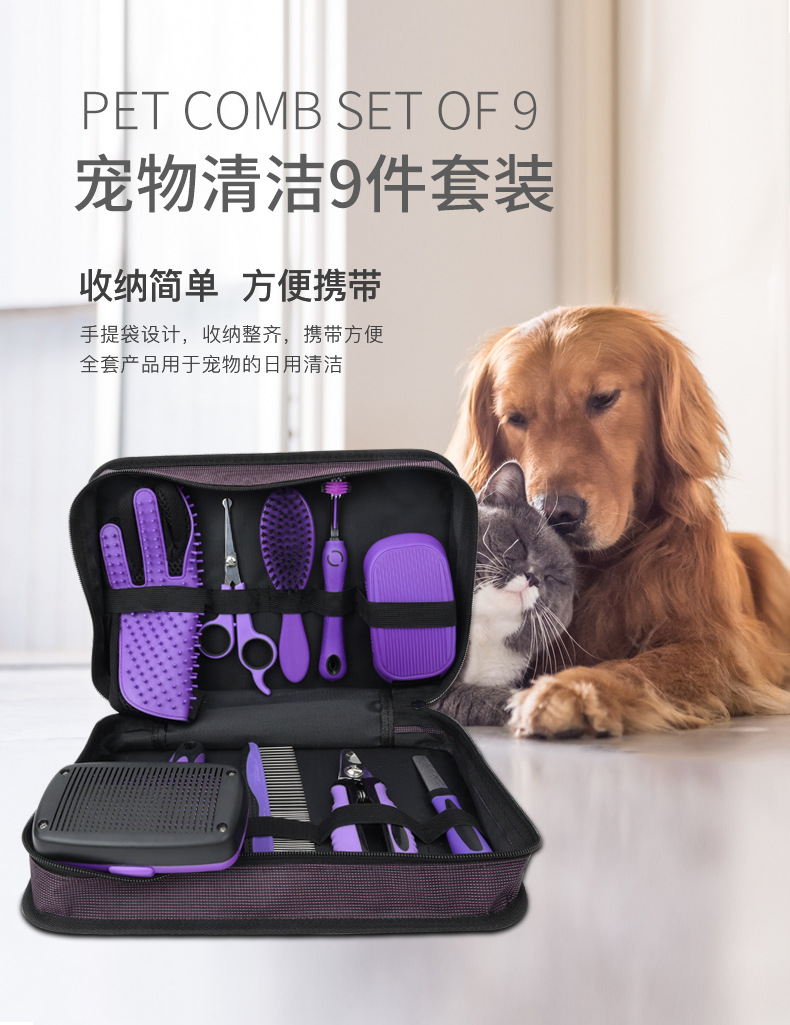 애완동물 털갈이 빗, 직선 빗, 손톱 가위, 파일, 털 면도기, 목욕 브러쉬, 9종 세트, 강아지 청소 및 미용 세트스토어 가기