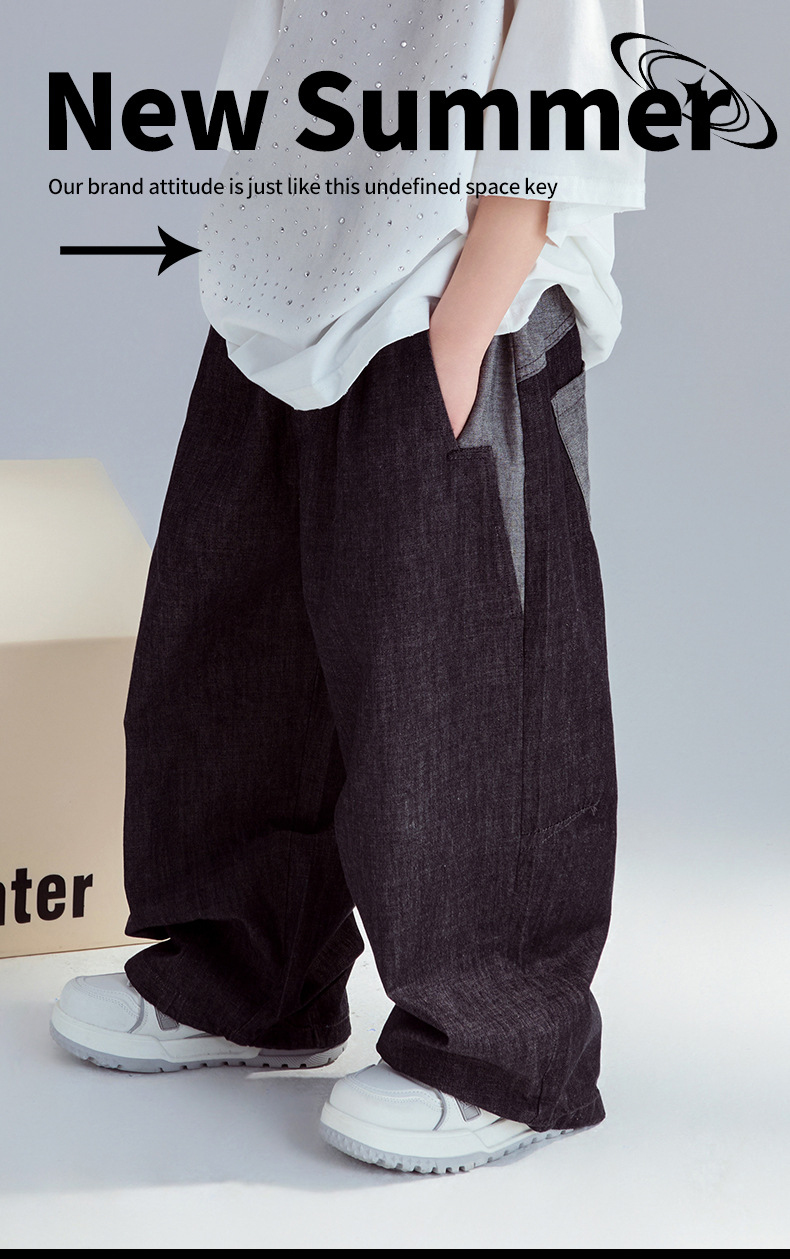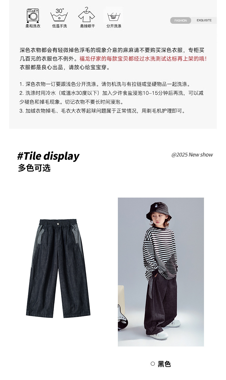 FULONGZAI 부모-자식 2025 새로운 틈새 스플리싱 새로운 청바지 캐주얼 디자인 느슨한 2502006스토어 가기