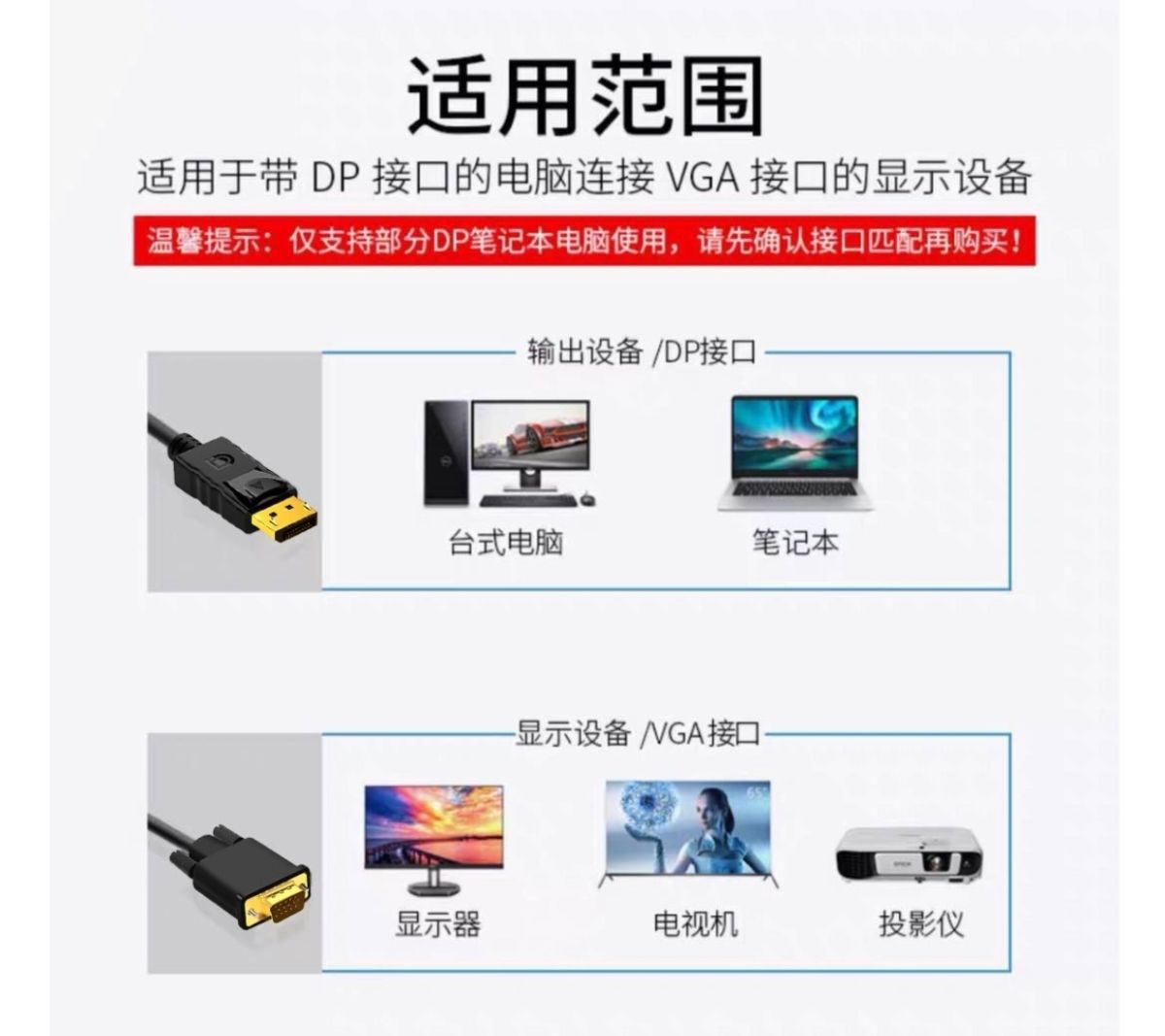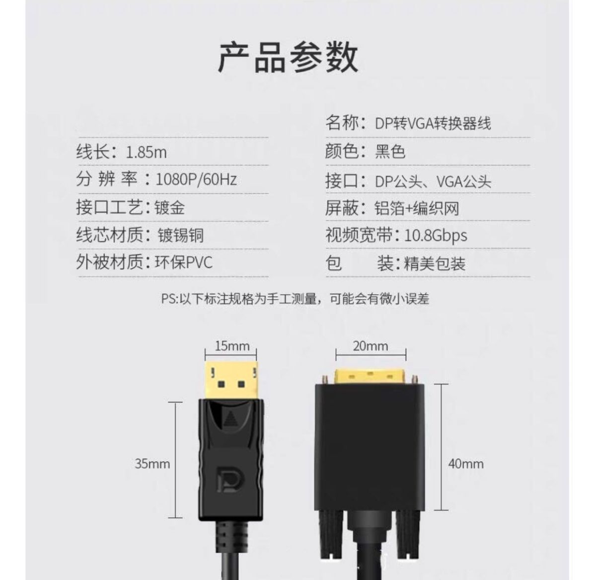 dp-vga 케이블 변환기 디스플레이 포트 고화질 비디오 어댑터 케이블 컴퓨터 그래픽 카드 연결 모니터스토어 가기