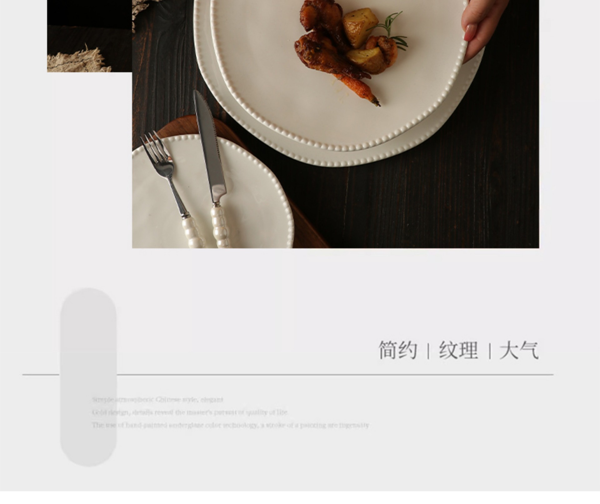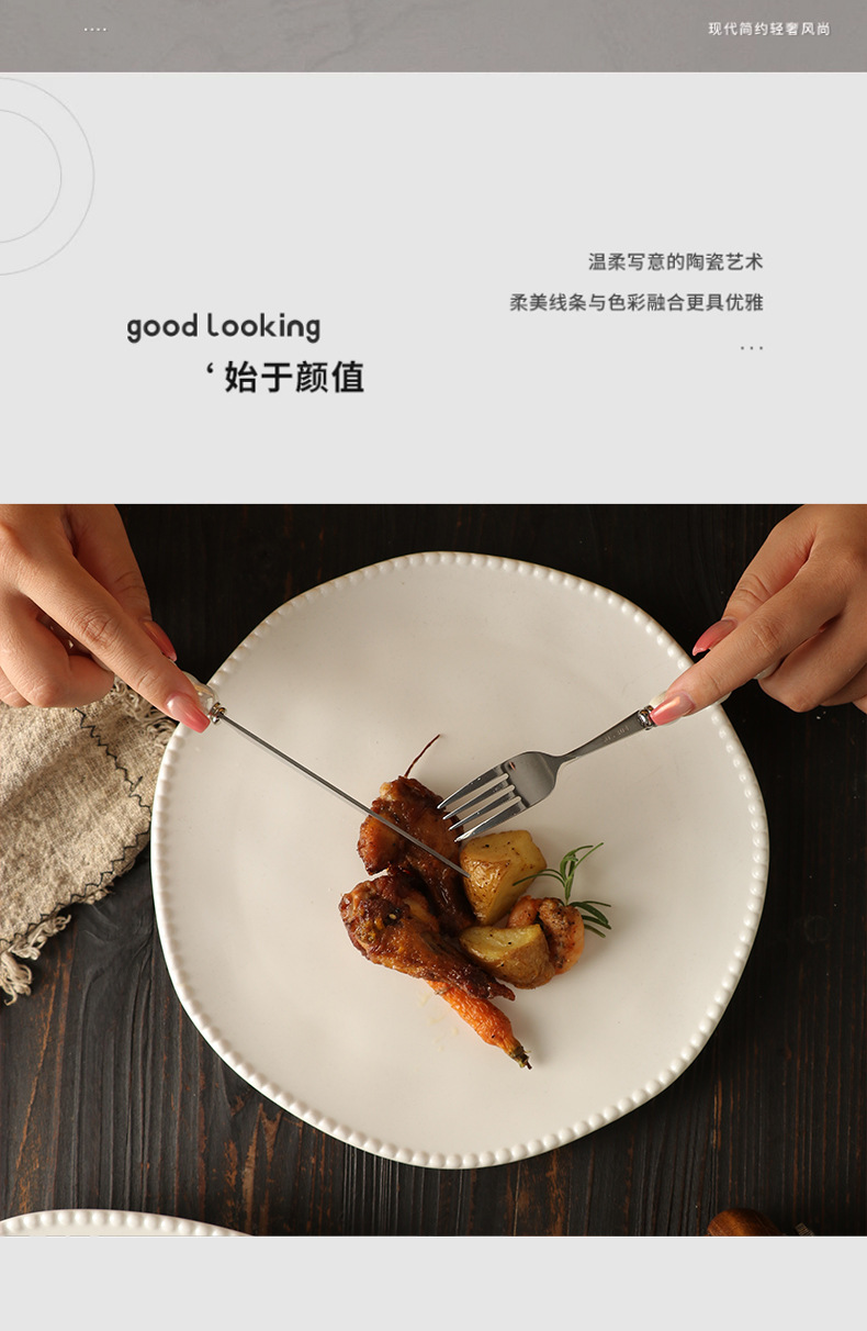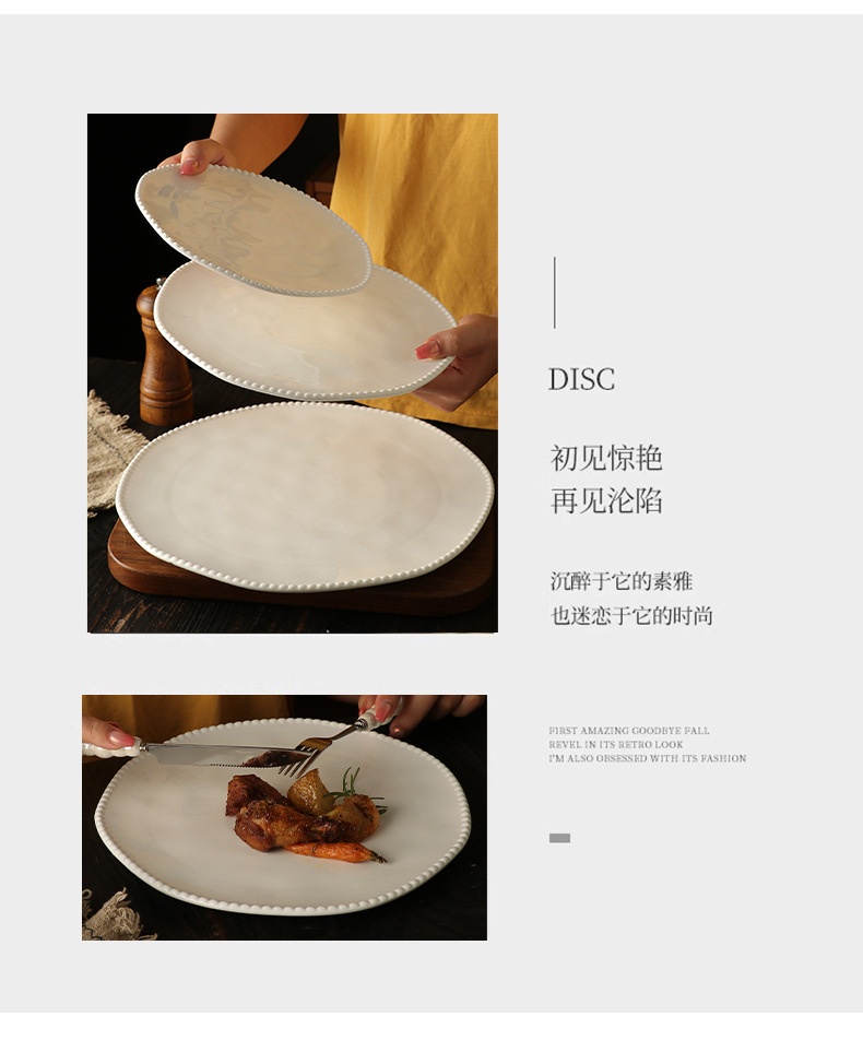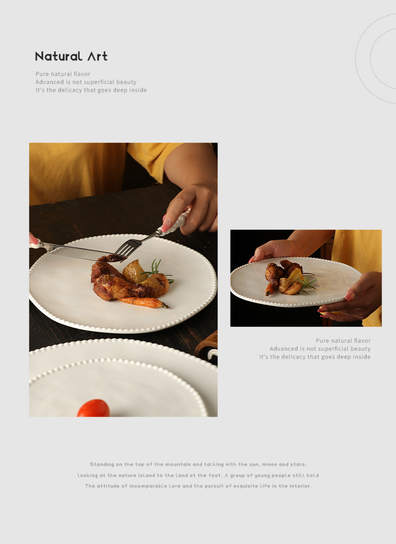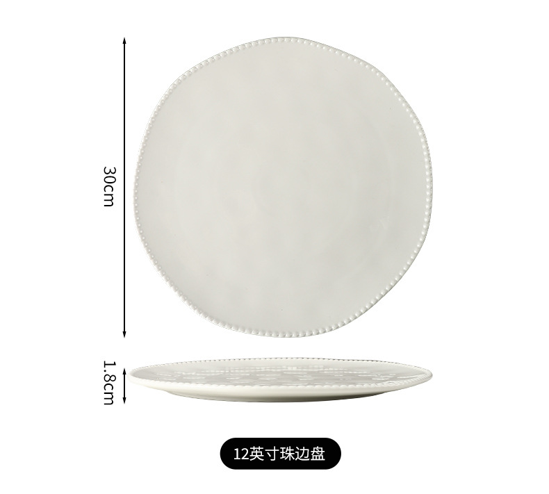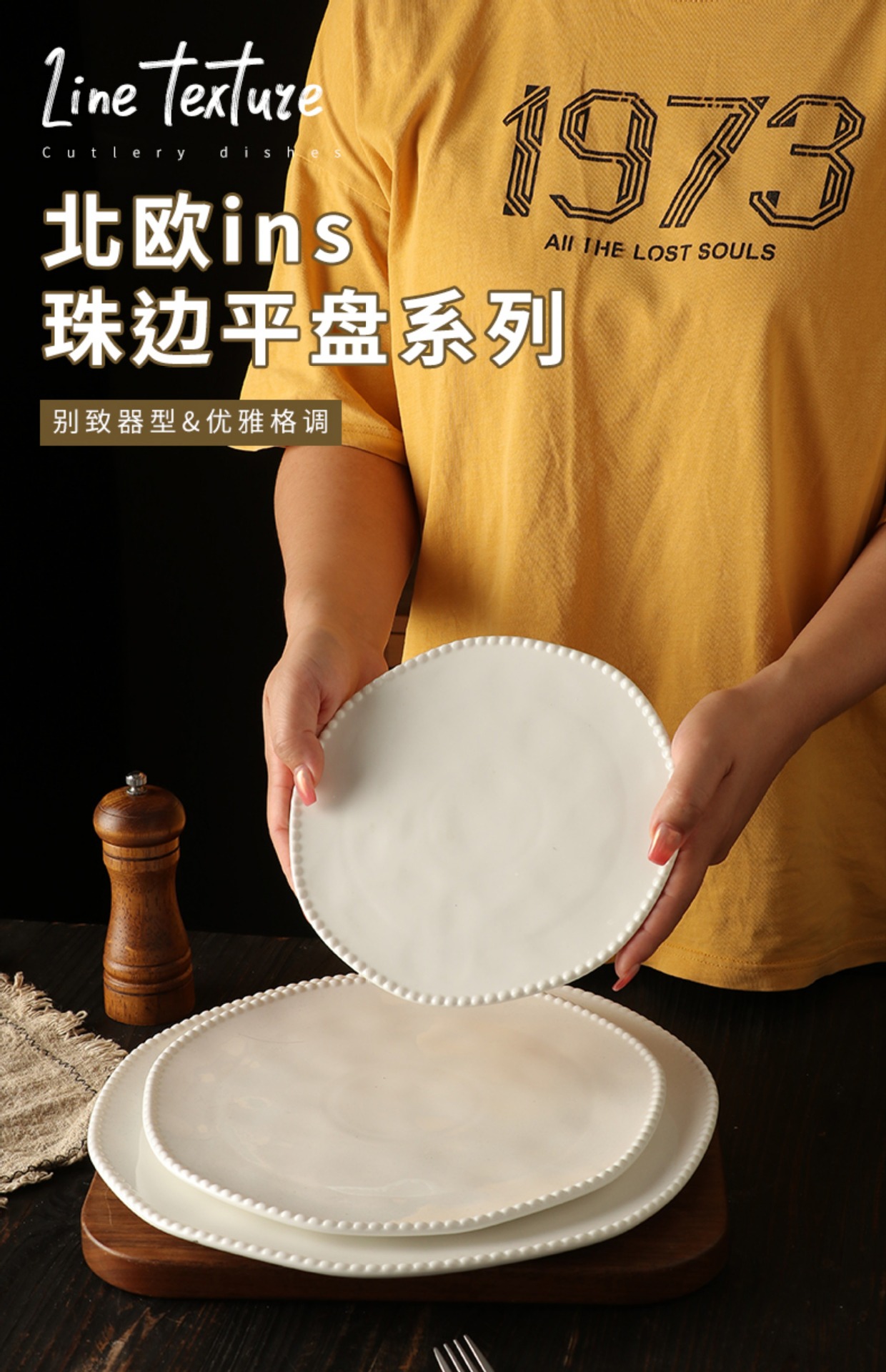 인스 스타일 비즈 테두리 순백색 접시 고급 세라믹 접시 멋진 접시 스테이크 접시 서양 음식 접시 흰색 접시