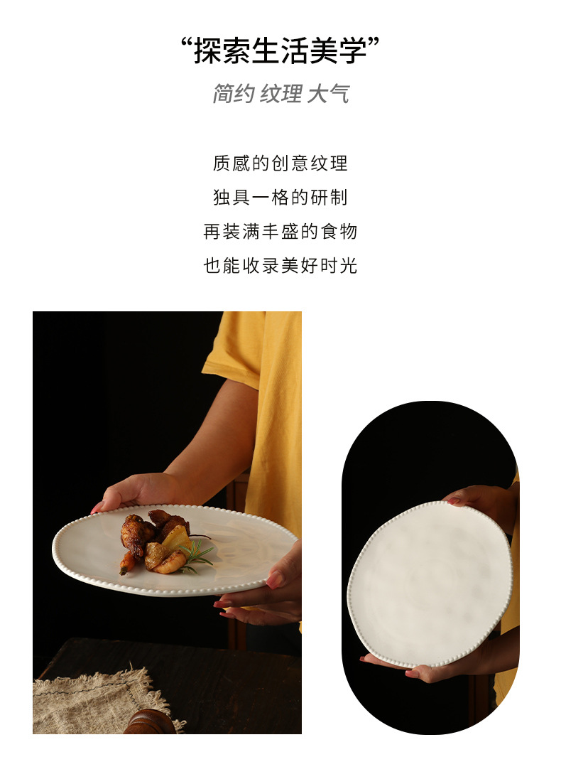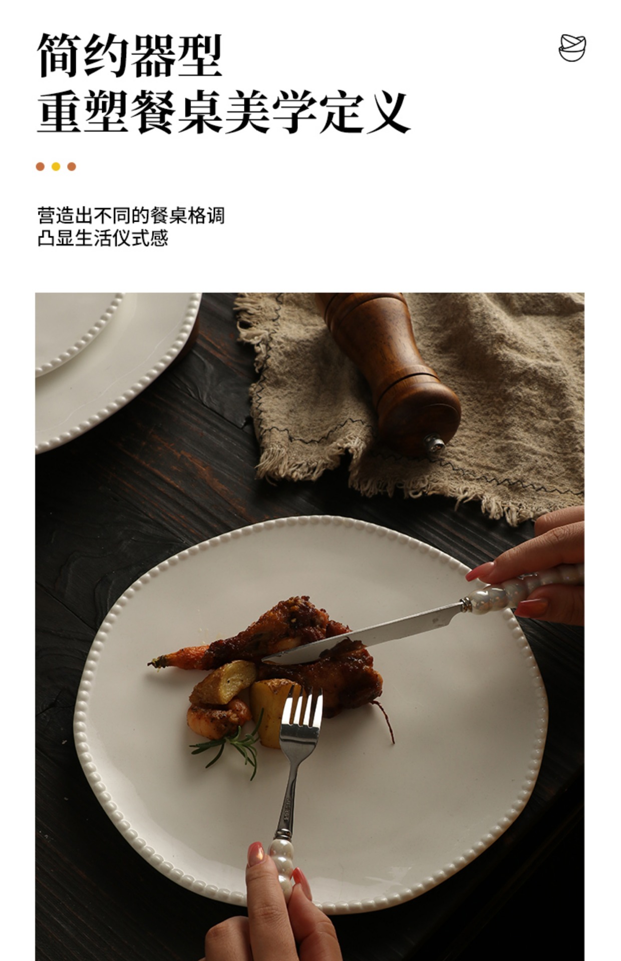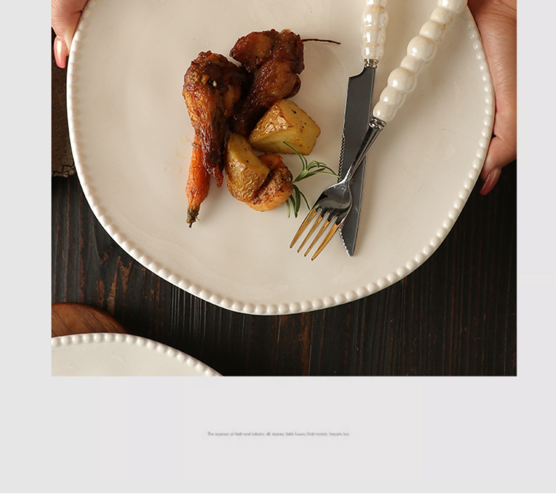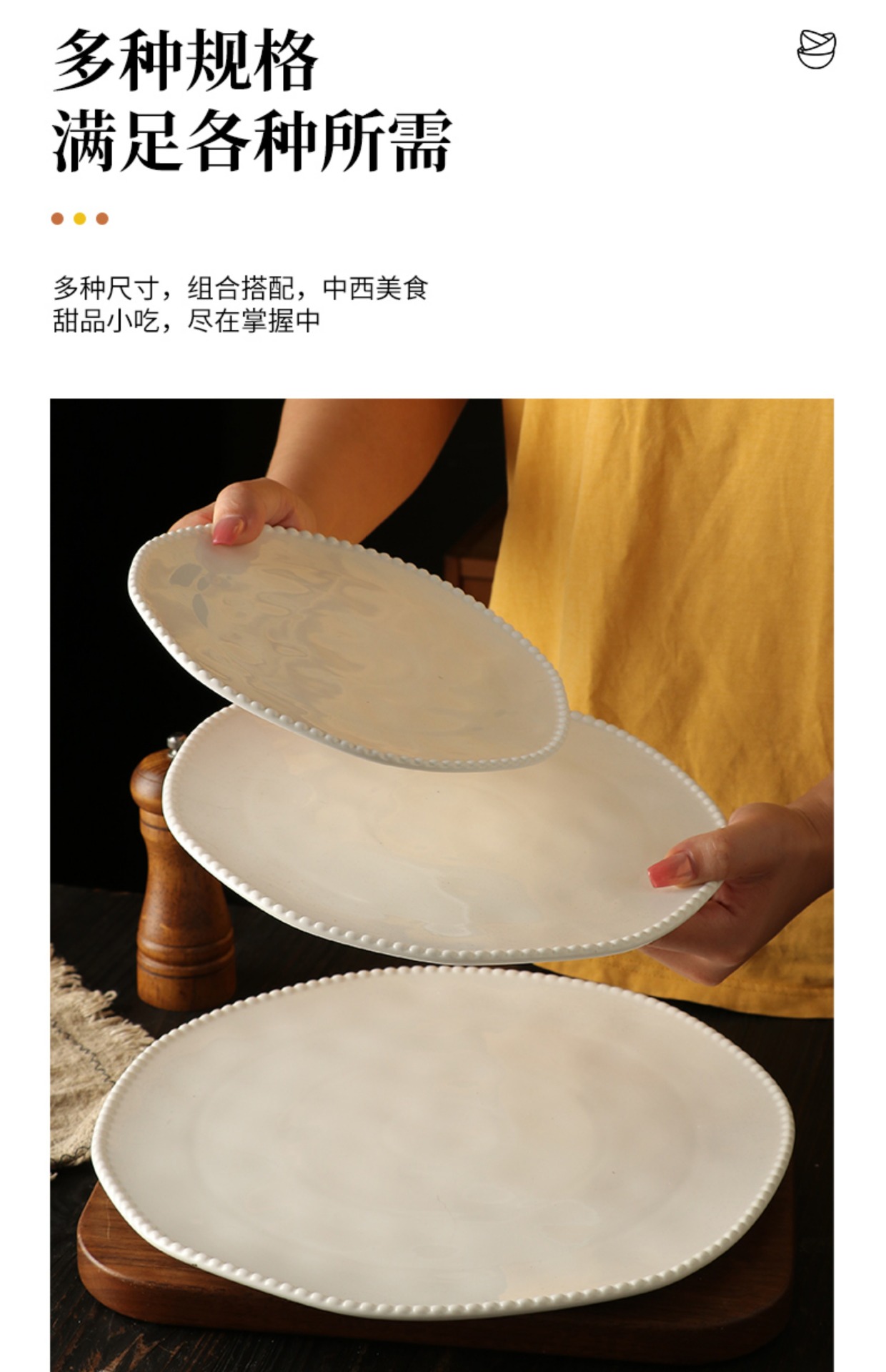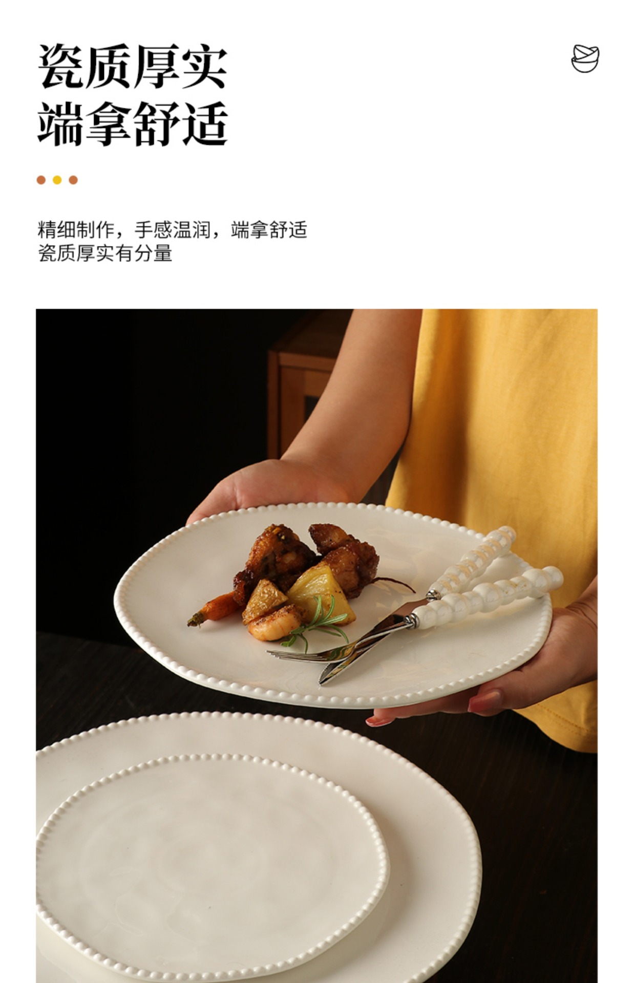 인스 스타일 비즈 테두리 순백색 접시 고급 세라믹 접시 멋진 접시 스테이크 접시 서양 음식 접시 흰색 접시